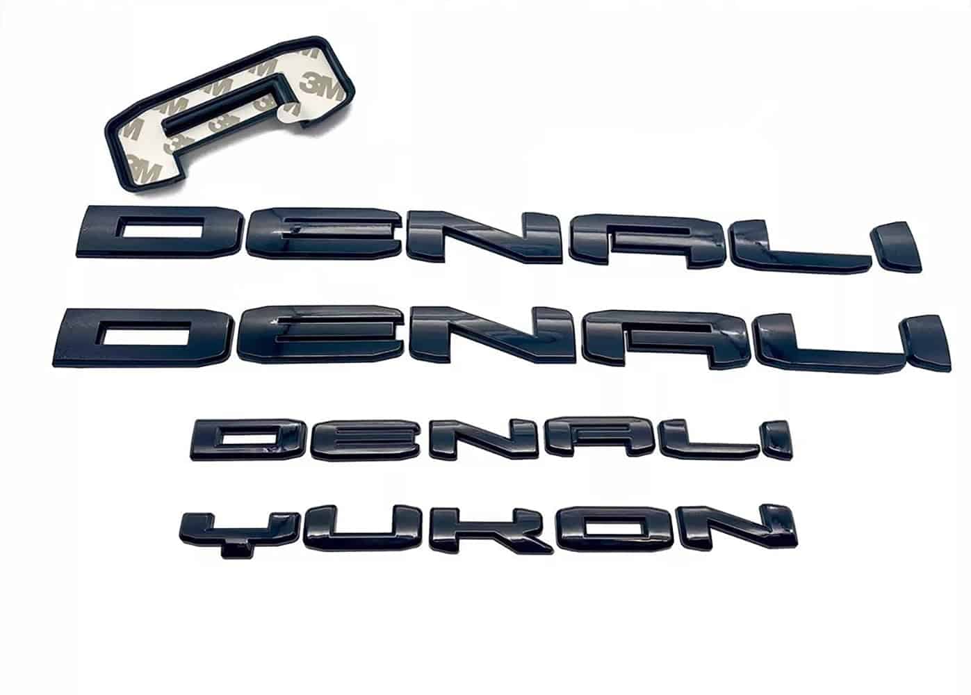 Juego de 4 Emblemas DENALI Yukon para Defensa Puerta Trasera y Portón Letras Placa 3D Reemplazo para Yukon Yukon XL 2021-2023. Fabricado con plástico ABS de alta calidad, resistente a la intemperie y que no se oxida, oxidará ni manchará. Específicamente diseñado para uso automotriz. Se adhiere fácilmente con cinta de doble cara 3M para una instalación sencilla. Mejora la apariencia exterior de su vehículo con este elegante juego de emblemas. El paquete incluye todo lo necesario para la instalación según se muestra en la primera imagen.