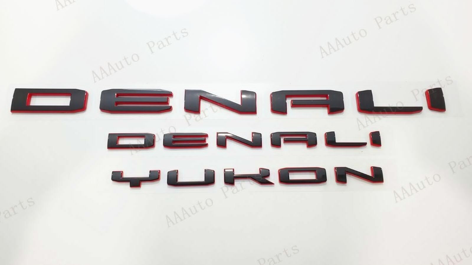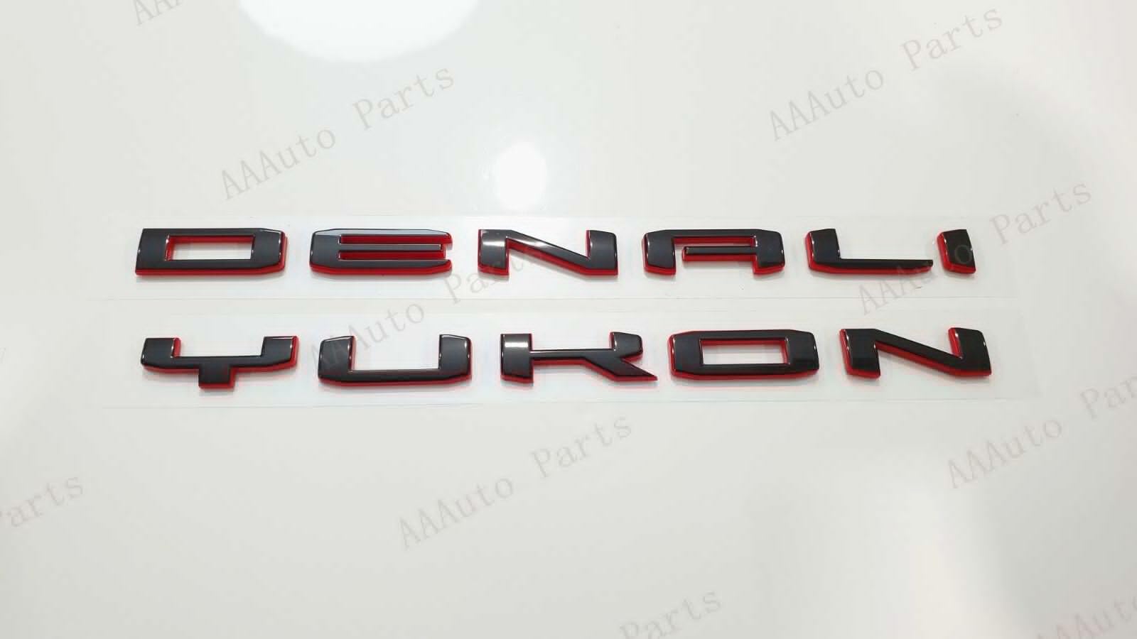 Juego de 4 Emblemas DENALI Yukon para Guardabarros, Puertas, Portón Trasero, Letras de Nombre 3D Insignia de Reemplazo para Yukon Yukon XL 2021-2023