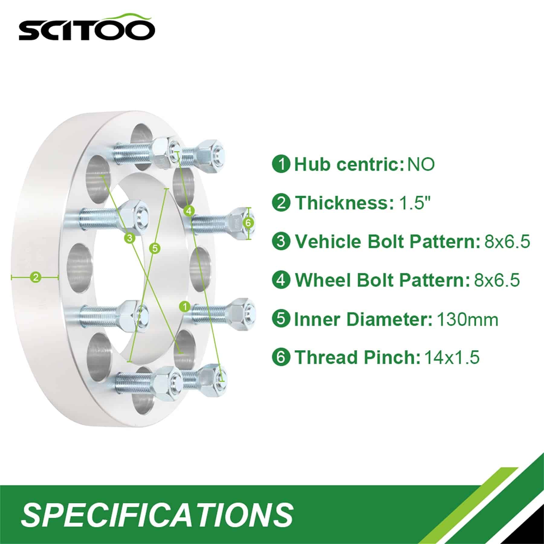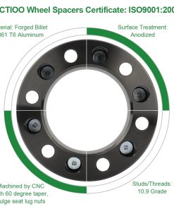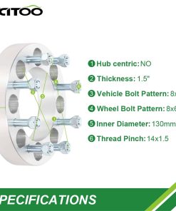 1. Espaciadores de rueda de 8 pernos 8×6.5 para vehículos compatibles: para Sierra HD 1500 1999-2010, para Sierra HD 2500 2001-2010, para Sierra 3500 1999-2010, y para Yukon XL 2500 2000-2013. 2. Adaptadores de espaciadores de rueda de 8 pernos que brindarán un desplazamiento de 1 pulgada para ruedas de fábrica. No son adecuados para ruedas más anchas de 8 o ruedas de mercado secundario con menos de 4 de desplazamiento hacia atrás. Se venden en pares. Mantiene el patrón de pernos de fábrica y actúa solo como espaciador de desplazamiento – 8×6.5. (Espesor de 1.5 pulgadas, patrón de perno del vehículo 8×6.5, patrón de perno de la rueda 8×6.5, centro de buje de 130 mm, pernos de 14×1.5). 3. Espaciadores de rueda de 1.5 pulgadas. Aleación de aluminio 6061 T6 de alta calidad, para garantizar el alto nivel de rendimiento y durabilidad para sus vehículos. 4. Espaciadores de rueda 8×6.5 fabricados con aluminio forjado en caliente de calidad aeronáutica con una relación resistencia/peso que supera al acero. Al mismo tiempo, los pernos ISO/DIN 10.9 forjados, tratados térmicamente y endurecidos, ofrecen resistencia. Bordes estriados rectos para un agarre mejorado durante la instalación. 5. Espaciadores de rueda de 8×6.5 a 8×6.5. INSTALACIÓN FÁCIL. Ingeniería de precisión y Modelo Específico para un Ajuste Perfecto y Equilibrio de la Rueda. El paquete contiene: 4 espaciadores de rueda 8×6.5 + 32 pernos de rueda.