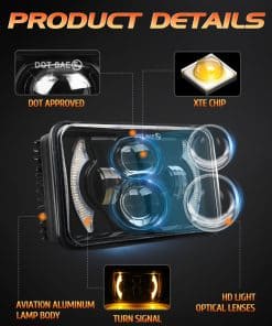 Juego de 4 faros LED DOT Approved 4×6 Pulgadas Hi/Lo
