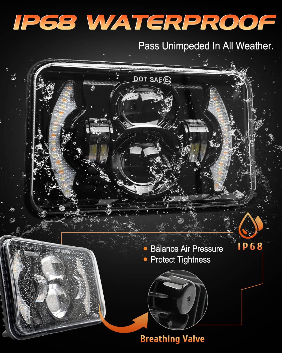 3. CONECTAR Y LISTO -Nuevo faro LED de 4×6 pulgadas con aro. Conectar y listo, el paquete viene con todas las piezas necesarias para hacer funcionar los faros, solo necesita 15 minutos para instalar la lámpara. El antiparpadeo está integrado en la placa de circuito, evita perfectamente el parpadeo.