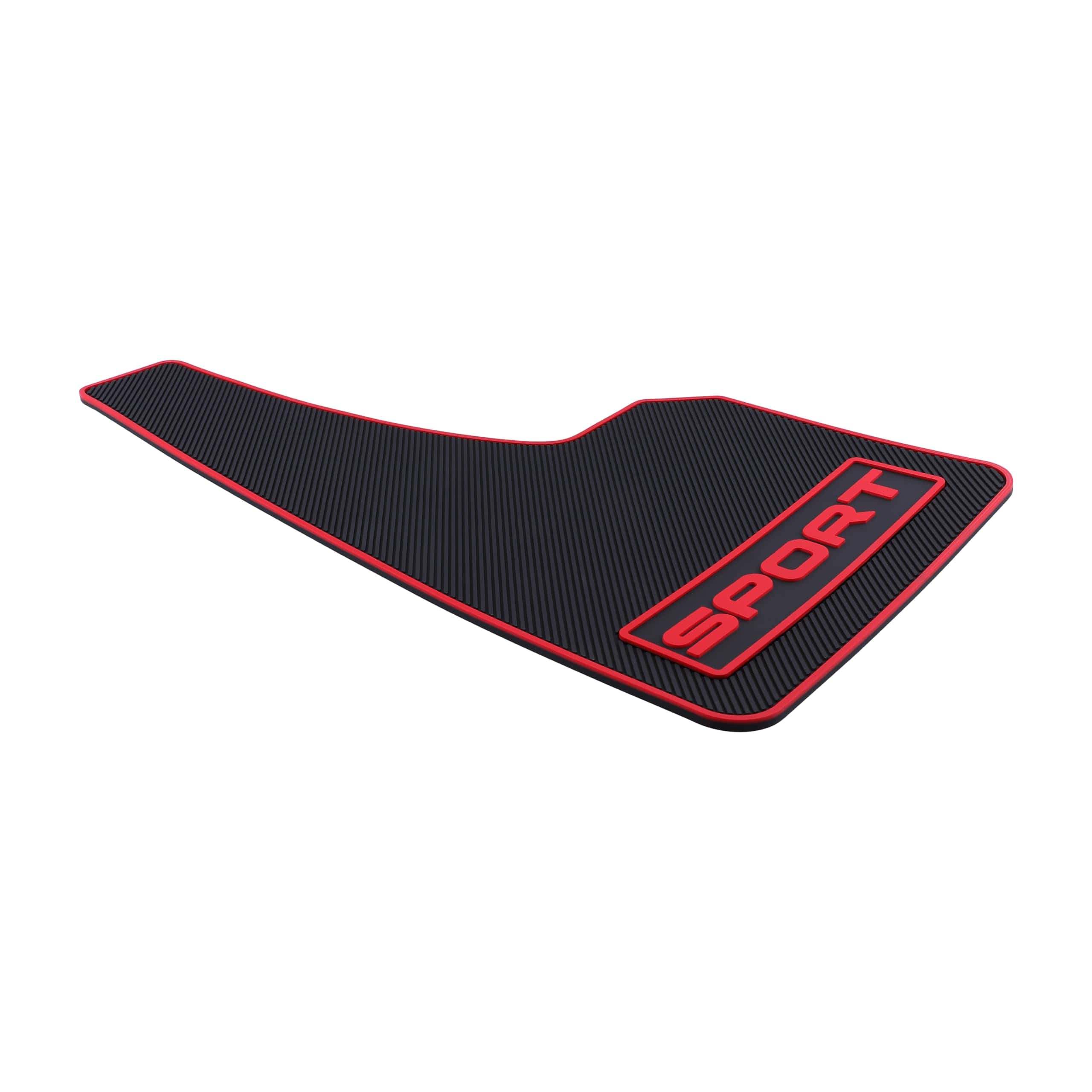 Material: Goma suave y elástica, anticongelante, resistente a las arrugas, no se rompe fácilmente. Tamaño: 17″ x 9″ x 0.2″. Color brillante y opcional, realzando el aspecto deportivo del vehículo, la selección personalizada le brinda una experiencia visual única, y hace que su automóvil se vea más genial que antes. Función: 1. Protección sólida – El guardabarros puede bloquear eficazmente el barro, la arena y el agua sucia durante la conducción del automóvil, evita rayar la pintura superficial del automóvil y protege el cuerpo y los pedales de la corrosión. 2. Cuando un vehículo está conduciendo de noche, al encontrarse con otros vehículos, los conductores cercanos pueden usar estos guardabarros reflectantes para detectar inmediatamente su automóvil por la noche. Cómo instalar: Necesita perforar agujeros de hardware de acuerdo a donde están los agujeros de fábrica y ajustarlos correctamente, puede usar los tornillos y clips existentes que sostienen el revestimiento del paso de rueda para asegurarlos. 1. Retire los tornillos originales del automóvil. 2. Despegue la forma del guardabarros a lo largo de la línea punteada. 3. Use papel maché para perforar agujeros en el auto original. 4. Atornille y posicione. 5. Apile el papel maché en la película y perfore los agujeros. 6. Alinee el tornillo en el agujero del papel maché, la instalación está completa. NOTA: Asegúrese de que su automóvil tenga espacio para los tornillos de montaje antes de comprar.