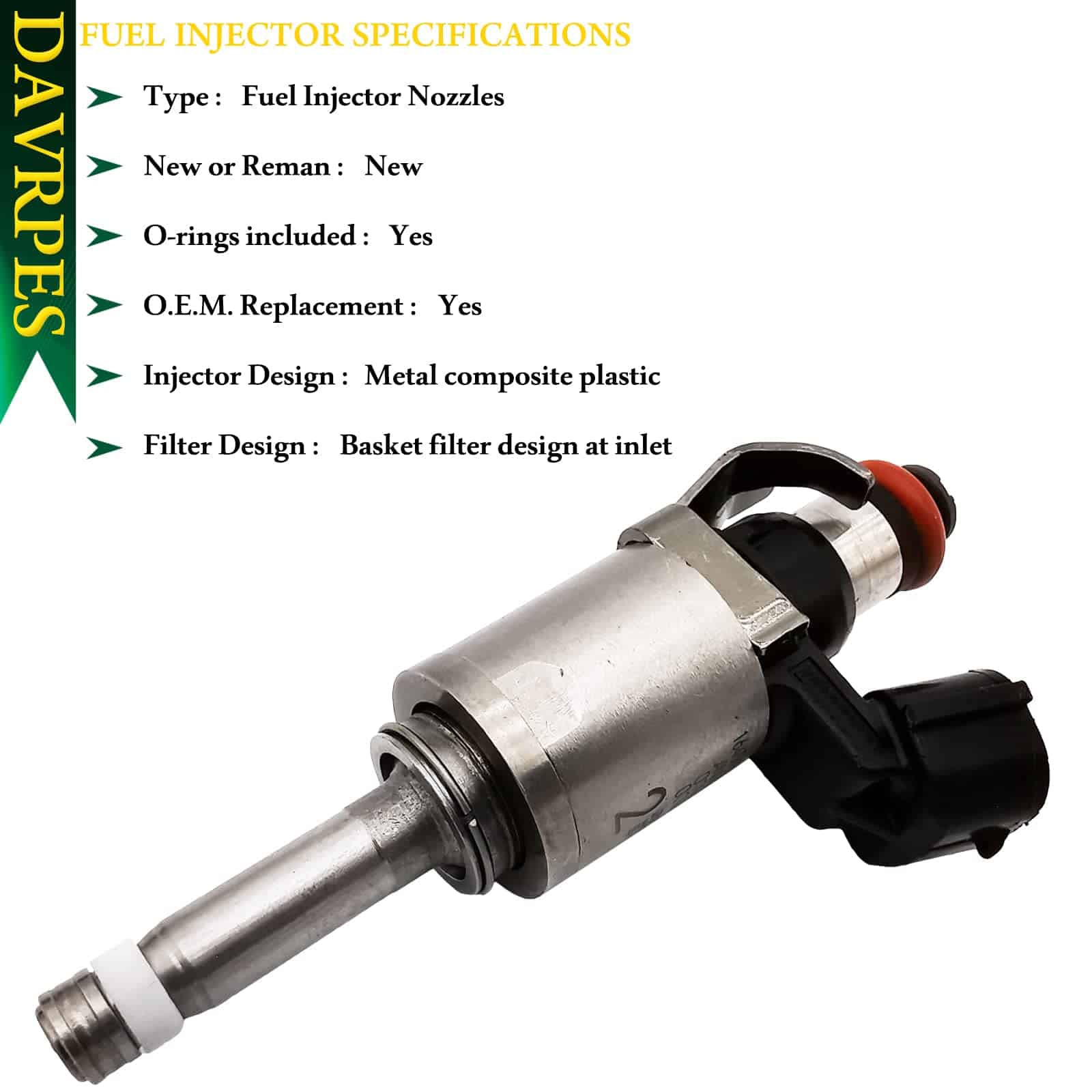 Este juego de 4 inyectores de combustible DAVRPES 16450-5A2-A01 ha sido diseñado para ser compatible con Honda Accord 2014 2.4L. La calidad de estos inyectores es comparable a OEM, con un tipo de orificio de 6 orificios discos, 2 pines y juntas tóricas incluidas. El combustible recomendado es gasolina y el diseño del inyector es de un compuesto de metal plástico. Cuenta con un diseño de filtro de cesta en la entrada para una mejor protección. Este producto viene con una garantía de 2 años que garantiza eficiencia, ahorro de combustible y protección del medio ambiente. Los números de parte de repuesto incluidos son 16450-5A2-A01, 164505A2A01, 16450 5A2 A01, 5A2A004-159460, 5A2A004159460, 5A2A004 159460. Ofrecemos un servicio postventa garantizado, donde un especialista en sensor automotriz estará disponible en todo momento para ayudarlo con cualquier pregunta o problema que pueda tener.