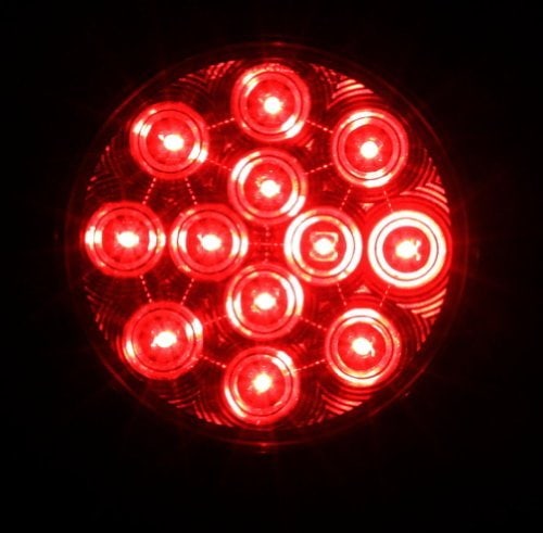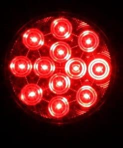 LUZ LED REDONDA DE 4″ CON 4 LED, 2 PARA PARADA GIRO COLA Y 2 BLANCAS PARA NIEBLA DE MARCHA ATRÁS Funciona como luz de parada, giro y cola. El lente de acrílico está soldado por ultrasonidos en la carcasa. Luz LED cuadrada de 12 diodos. Opera de 9 a 16 voltios. El kit incluye 2 luces LED, 2 grommets y 2 enchufes.