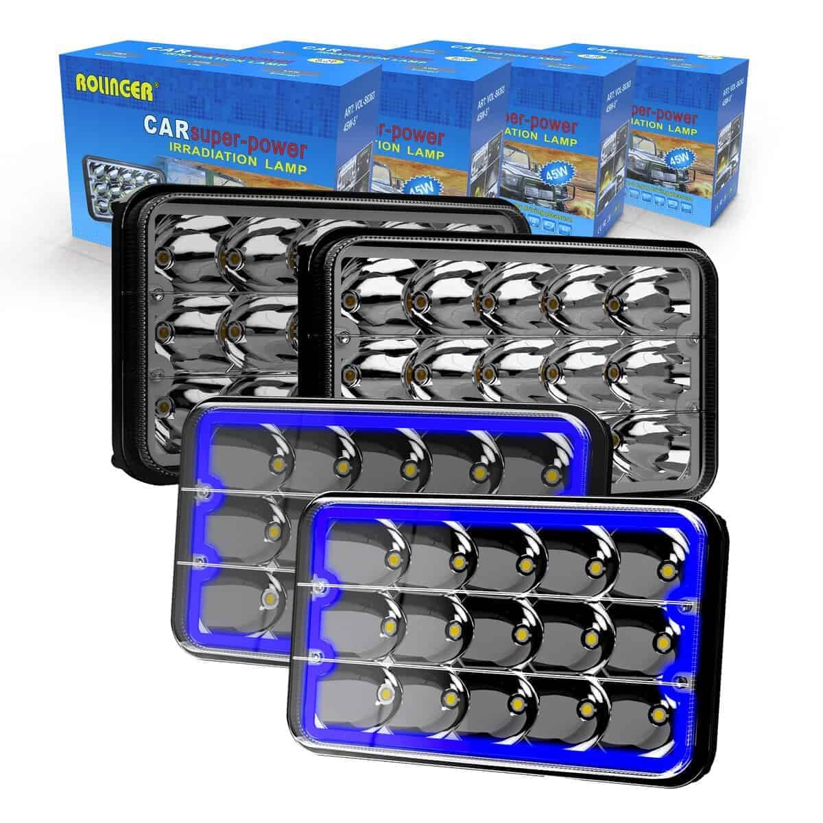 Juego de 4 Luces LED Selladas Rectangulares con Halo Azul
