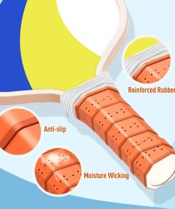 Paletas de Pickleball Cómodas y Ligeras. Las paletas de pickleball están equipadas con un agarre acolchado perforado, que es antideslizante y absorbe el sudor. Ayuda a los usuarios a agarrar mejor el mango y proporciona amortiguación para que no te canses de jugar durante mucho tiempo. El agarre de 4.57″ de circunferencia permite suficiente espacio para el máximo golpe de muñeca para potencia y efecto y rango de movimiento en tu muñeca.