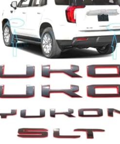 Juego de 4 piezas de Emblema de Letras Yukon SLT 3D Insignia de Puerta Trasera Calcomanía Etiqueta Yukon XL Reemplazo para Yukon SLT 2021-2023. Este kit incluye 3 emblemas de Yukon y 1 emblema SLT. Fabricado con plástico ABS de alta calidad y se adhiere fácilmente con cinta de doble cara 3M. Aporta un aspecto personalizado a la parte exterior de tu vehículo, mejorando su estética. Perfecto para reemplazar emblemas dañados o desgastados. ¡Haz que tu Yukon SLT destaque con este juego de emblemas de calidad!