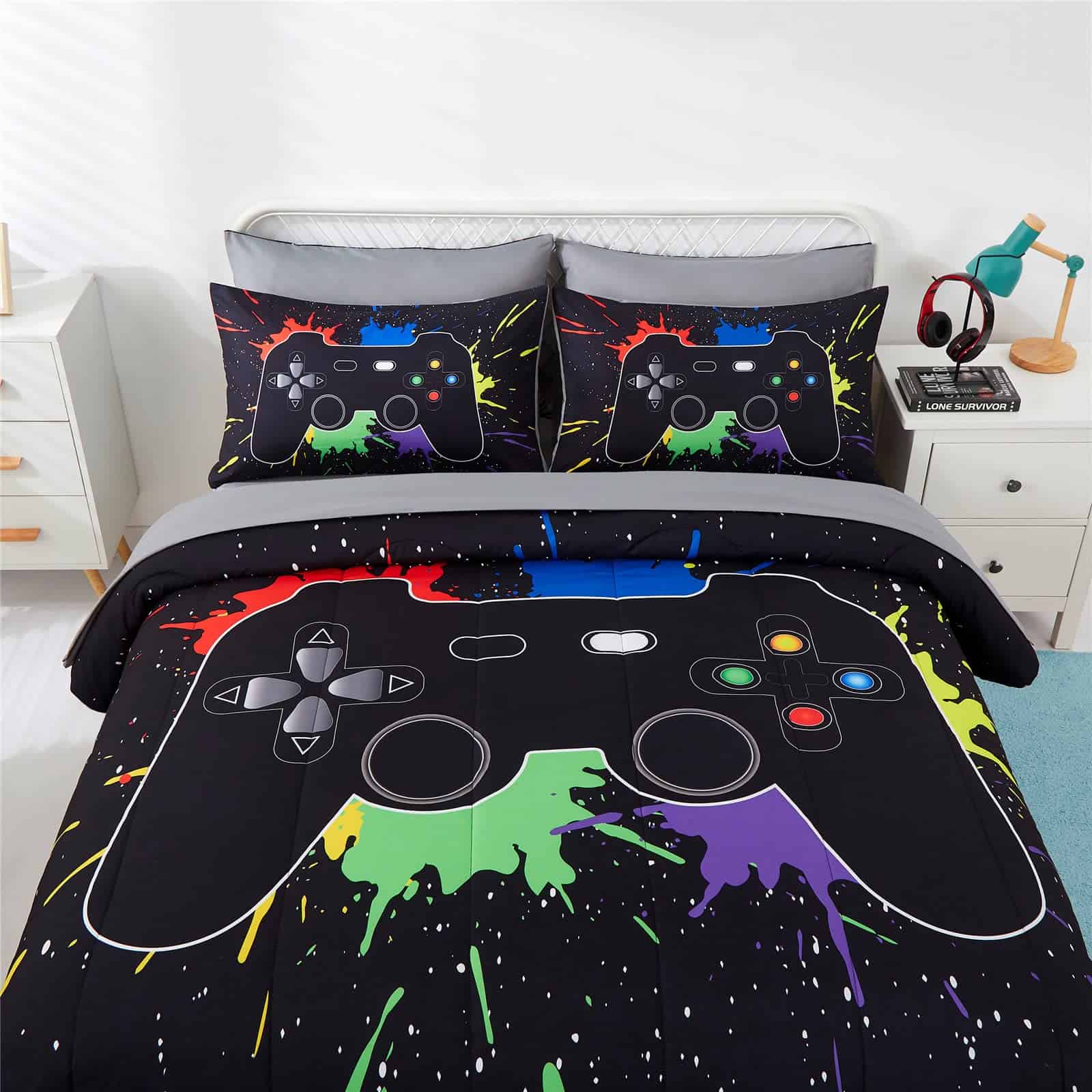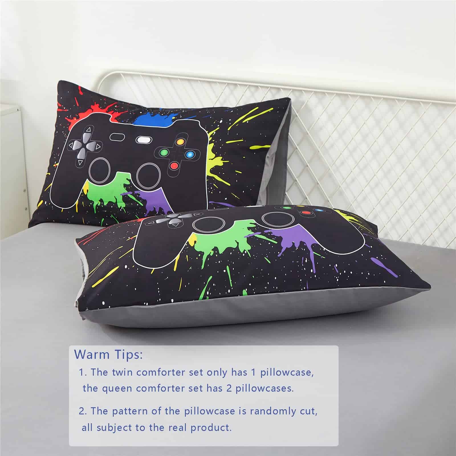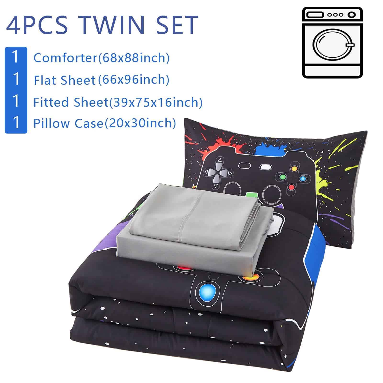 Edredón de controlador de videojuegos en 3D con colores de salpicaduras de arcoíris, convirtiéndolo en una obra de arte y una integración de estética y visión. Profundamente amado por los jugadores, la combinación perfecta para una habitación temática de juegos. ¡Agrega diversión de color y un aspecto genial a tu habitación! El juego de ropa de cama para juegos de 4 piezas en tamaño twin incluye 1 edredón de juegos (68 x 88), 1 sábana plana (66 x 96), 1 sábana ajustable (39 x 75 + 16) y 1 funda de almohada (20 x 30). Consejos cálidos: El edredón de juegos está empacado al vacío, colócalo al sol y golpea suavemente unas cuantas veces para que quede esponjoso. Tela 100% microfibra con relleno premium de poliéster, suave, esponjosa, ligera y cómoda. Creando un ambiente de sueño acogedor y cómodo y proporcionando sensaciones como estar en las nubes para tu pequeño. Disfruta de un dulce sueño con nuestro edredón de consola de juegos en 3D con arcoíris. El juego de edredón de 4 piezas para gemelos con temática de juegos transforma cualquier habitación, habitación de niños, habitación de invitados, dormitorio, sala de juego, RV o casa de vacaciones. Adecuado para la escuela o el hogar. Excelentes regalos para niños, niñas y adolescentes en cumpleaños, Acción de Gracias, Navidad y Día de San Valentín. El edredón para niños gemelos de juegos se puede lavar a máquina en agua fría. El color permanecerá brillante y vibrante después de múltiples lavados. Creemos en la calidad de nuestro producto. Compra con confianza. Si hay algún problema, no dudes en ponerte en contacto con nosotros en cualquier momento.