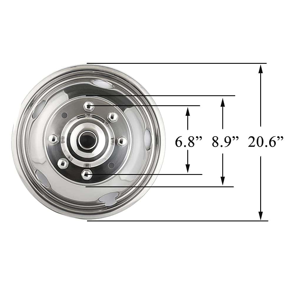 Juego de 4 tapacubos Dually de 19.5″ de acero inoxidable