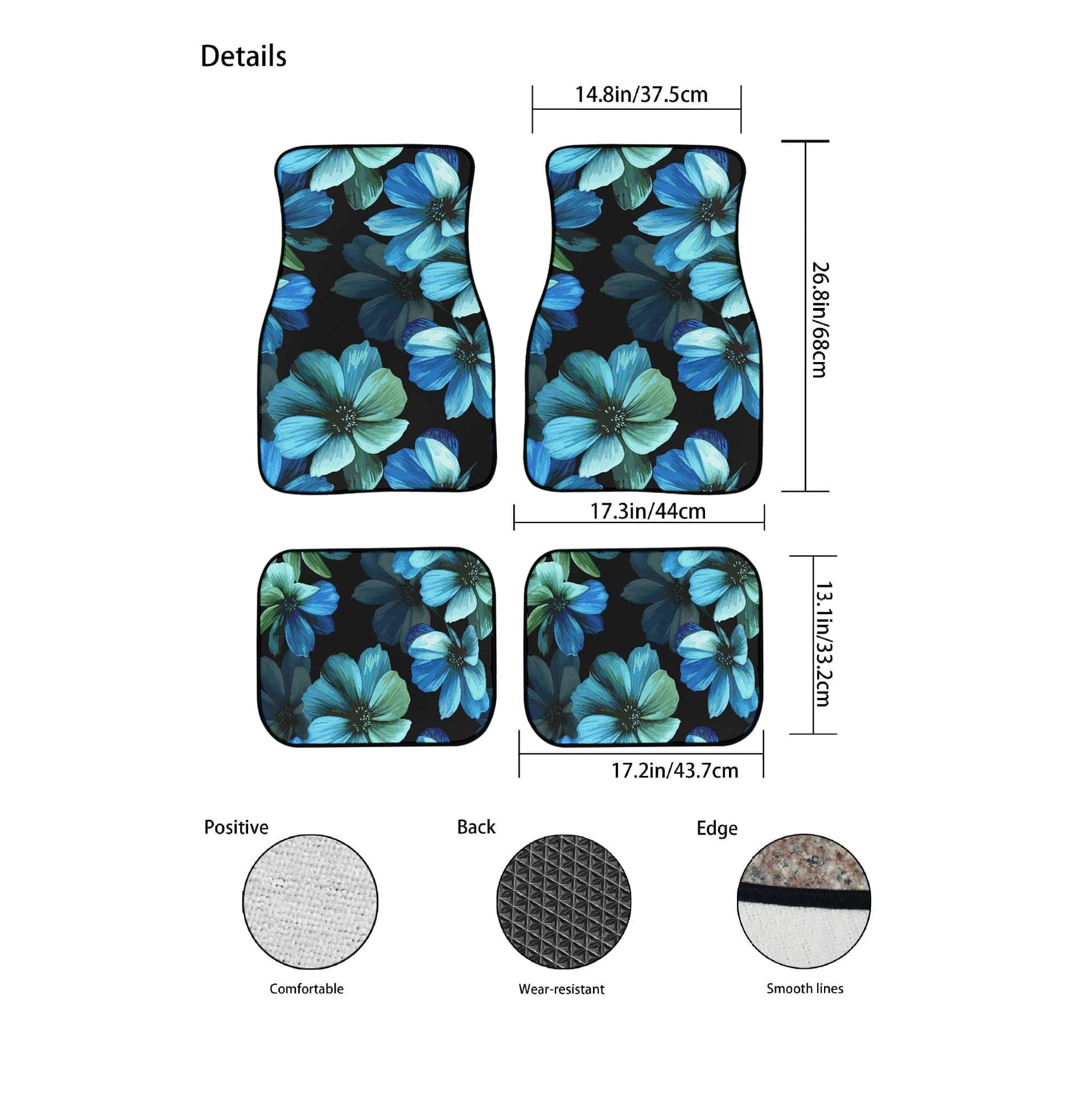 Material: Hecho de Poliéster de Alta Calidad, Duradero y Lavable; Parte Trasera de Goma Antideslizante, Mantiene tus Tapetes en su Lugar.
