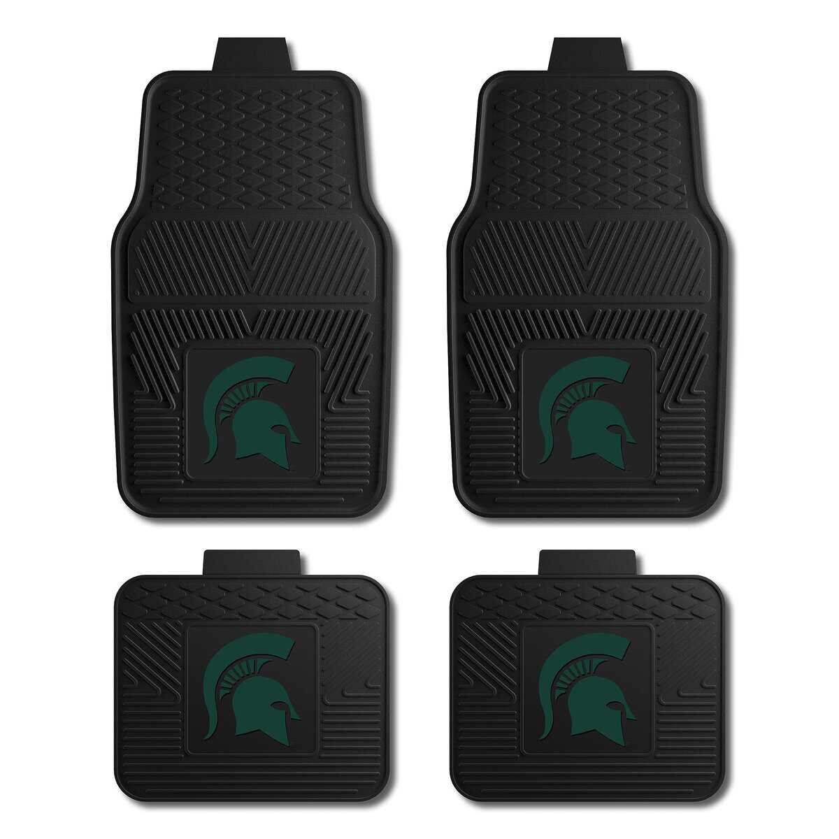 Juego de 4 tapetes para autos, camionetas y SUV de Fanmats Michigan State University Spartans – Protección para todo clima, diseño de depósito profundo, ajuste universal – Logo del equipo NCAA en 3D – Delanteros 29�x17�, Traseros 14�x17�