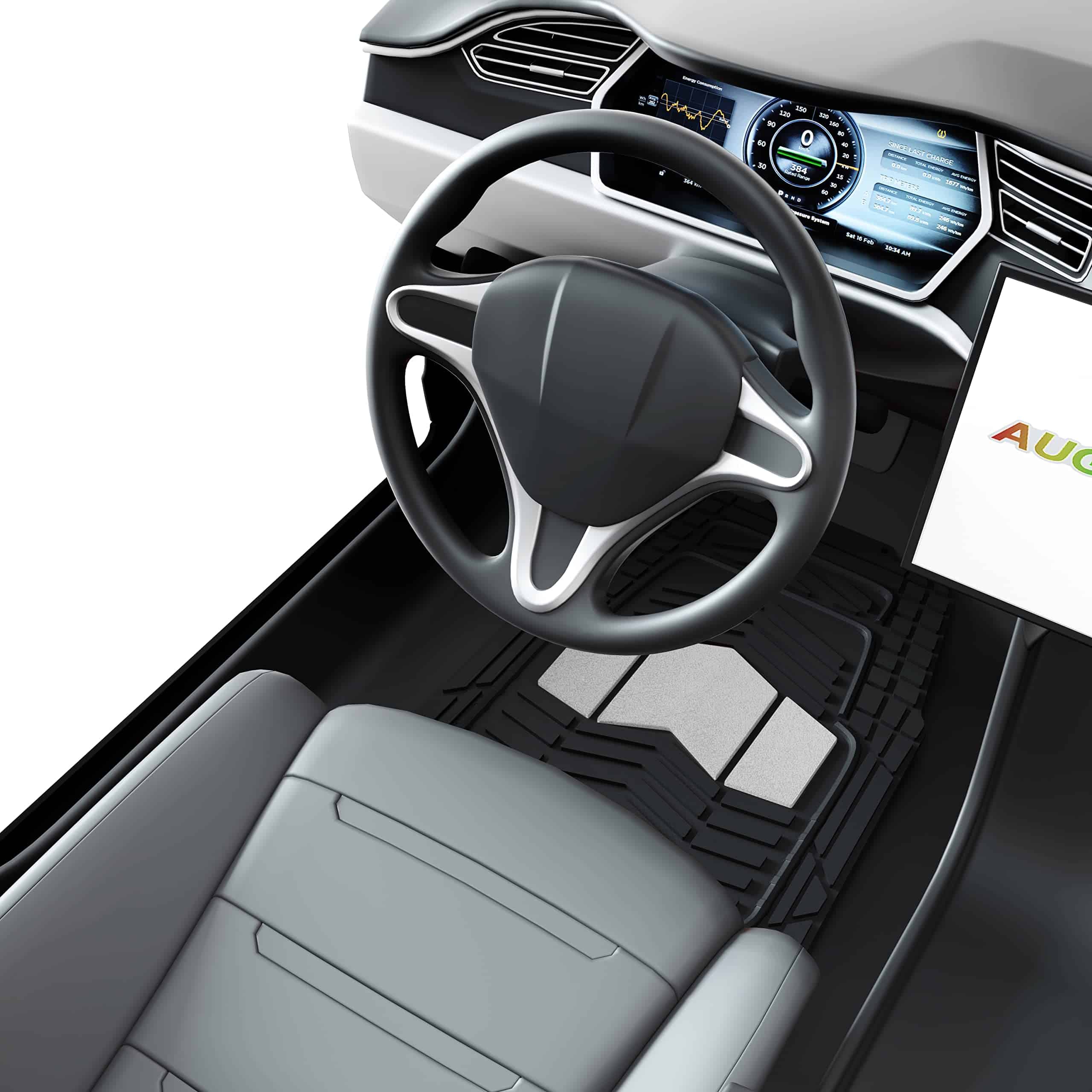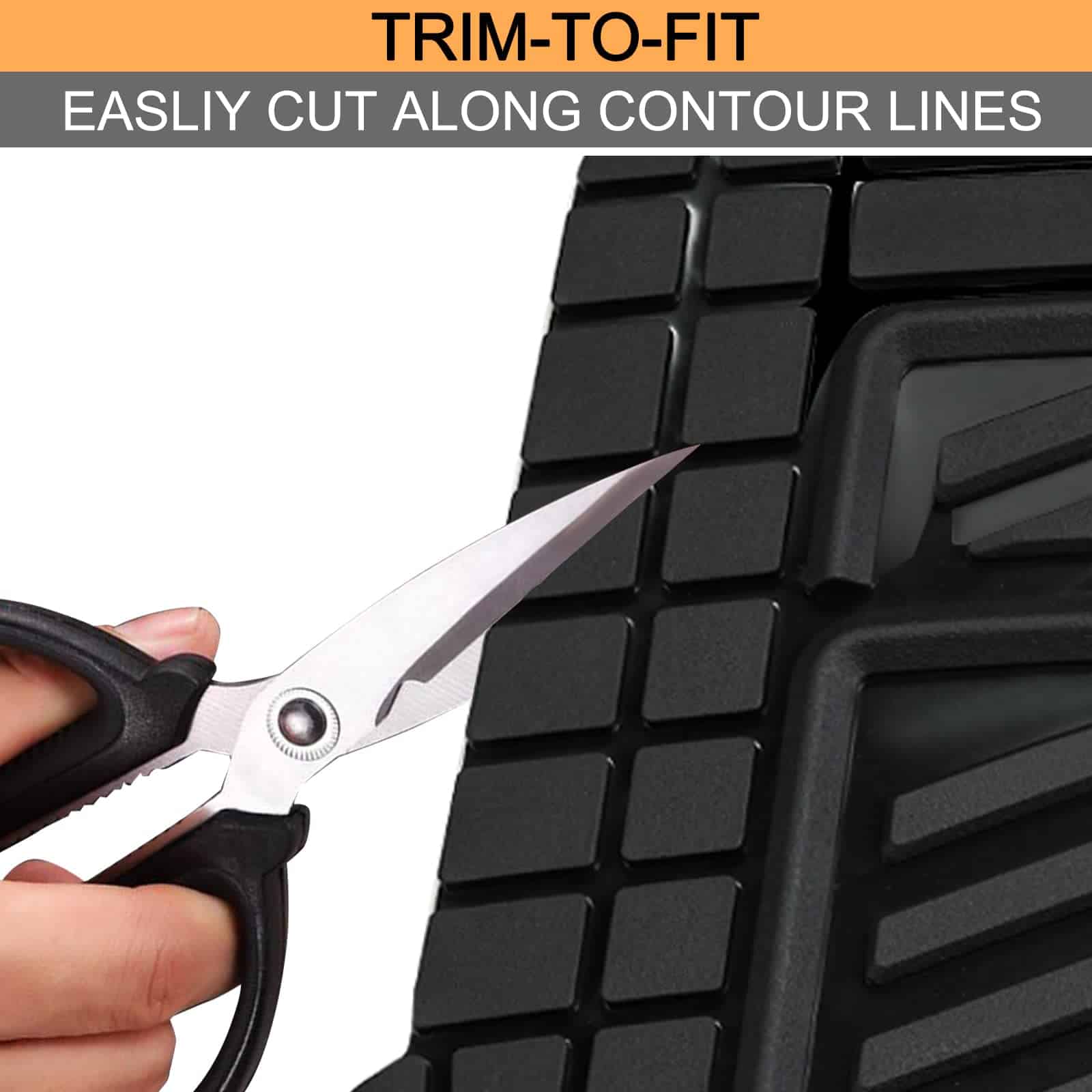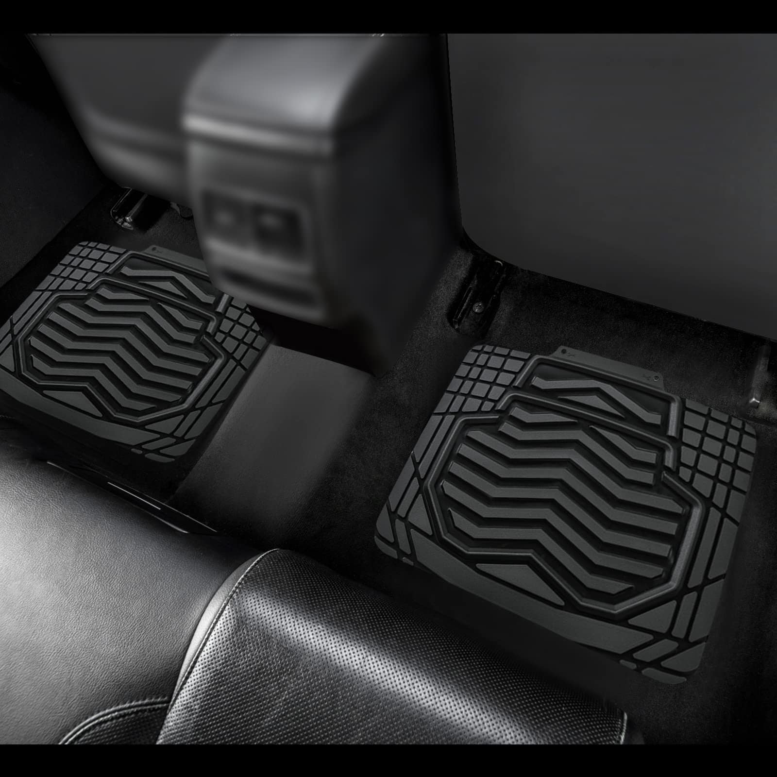 Juego de 4 tapetes para piso de coche de goma resistente todo clima en dos tonos negro y plateado, Universal para autos, sedanes, SUVs, camionetas y vans. Los tapetes están fabricados con material de goma duradera de alta calidad que cumple con los estándares más exigentes. Incluso en temperaturas altas con las puertas cerradas, no se produce olor, lo que garantiza la seguridad de todos los pasajeros al entrar al vehículo. Diseñados para resistir la nieve, el barro, la lluvia, la suciedad, los derrames y cualquier elemento adverso que pueda dañar el piso original de su vehículo. Los tapetes son recortables a medida, lo que les permite adaptarse a su vehículo con solo un par de tijeras. La base antideslizante mantiene los tapetes en su lugar para una conducción segura, con protuberancias de goma en la parte inferior para evitar que se muevan. Las medidas de los tapetes son: Delanteros 27.80″ x 19.21″ y Traseros 15.94″ x 19.2″, fáciles de recortar para ajustarse a cualquier vehículo.