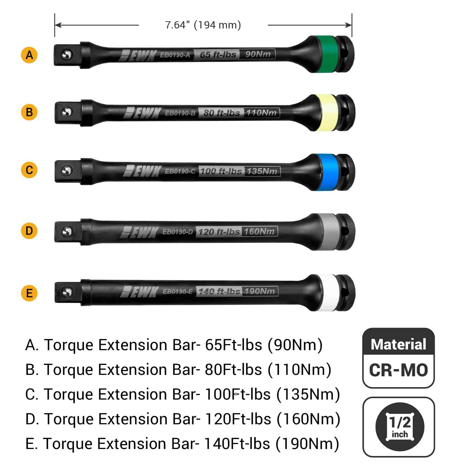 Juego de 5 Barras de Extensión de Torque Limitado para