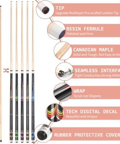 Juego de 5 Palos de Billar Kmise, 58″ Palos de Billar, Palo