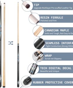 1. Palo Recto: Madera sólida seleccionada, el palo de billar está pulido a mano para garantizar que el eje esté recto y suave, te sorprenderás gratamente cuando golpees la bola de billar con este palo. 2. Palo de Billar Profesional: Longitud del palo: 58″ (longitud estándar);Peso del palo: 20 oz, ligero pero sólido, ideal para jugadores hombres/jóvenes/mujeres/niños. 3. Palo de Billar Exclusivo: Patrón de calcomanía único y múltiples capas de barniz ayudan a proteger la madera de la humedad y la deformación, facilitando a los jugadores mantener sus palos. 4. Escenario: El material del palo de billar Kmise es resistente al desgaste y de calidad, ideal para uso en bar/sala de billar/casa, el juego de 5 palos de billar (negro, verde, rojo, naranja, morado) es más rentable. 5. Gran Regalo para los Amantes del Billar: Este es el regalo perfecto para cualquiera que disfrute jugando al snooker y otros juegos de billar, cómpraselo a tus amigos o esposo, quedarán encantados con este regalo de palo de billar