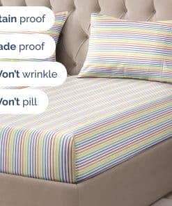 Split King rainbow sábanas de rayas con patrón de sábanas de algodón cama vertical natural patrón profundo bolsillos de bambú franela seda hotel microfibra sábana de lujo con patrón enfriamiento & juego de ropa de cama de funda de almohada decoracion de habitación lino suave pinstripe premium orgánico