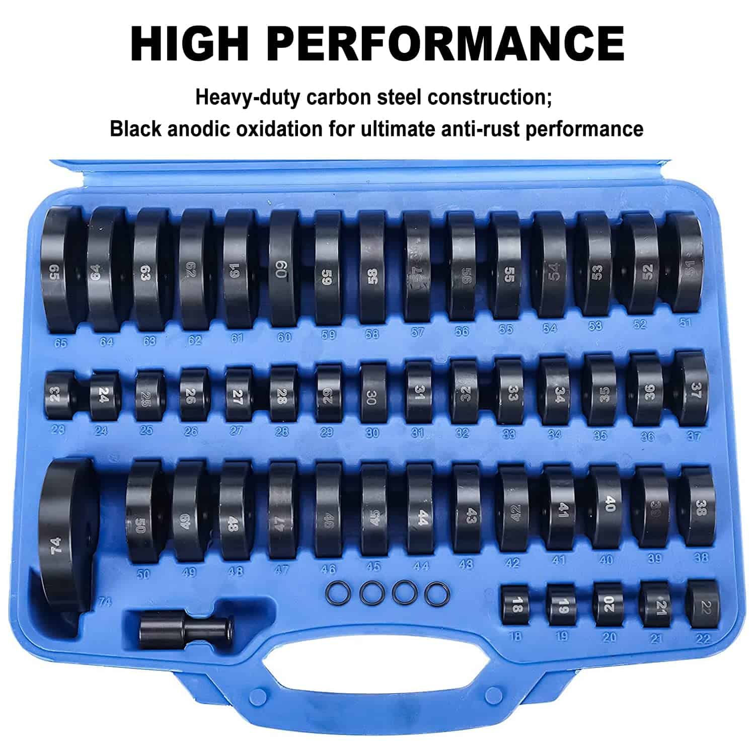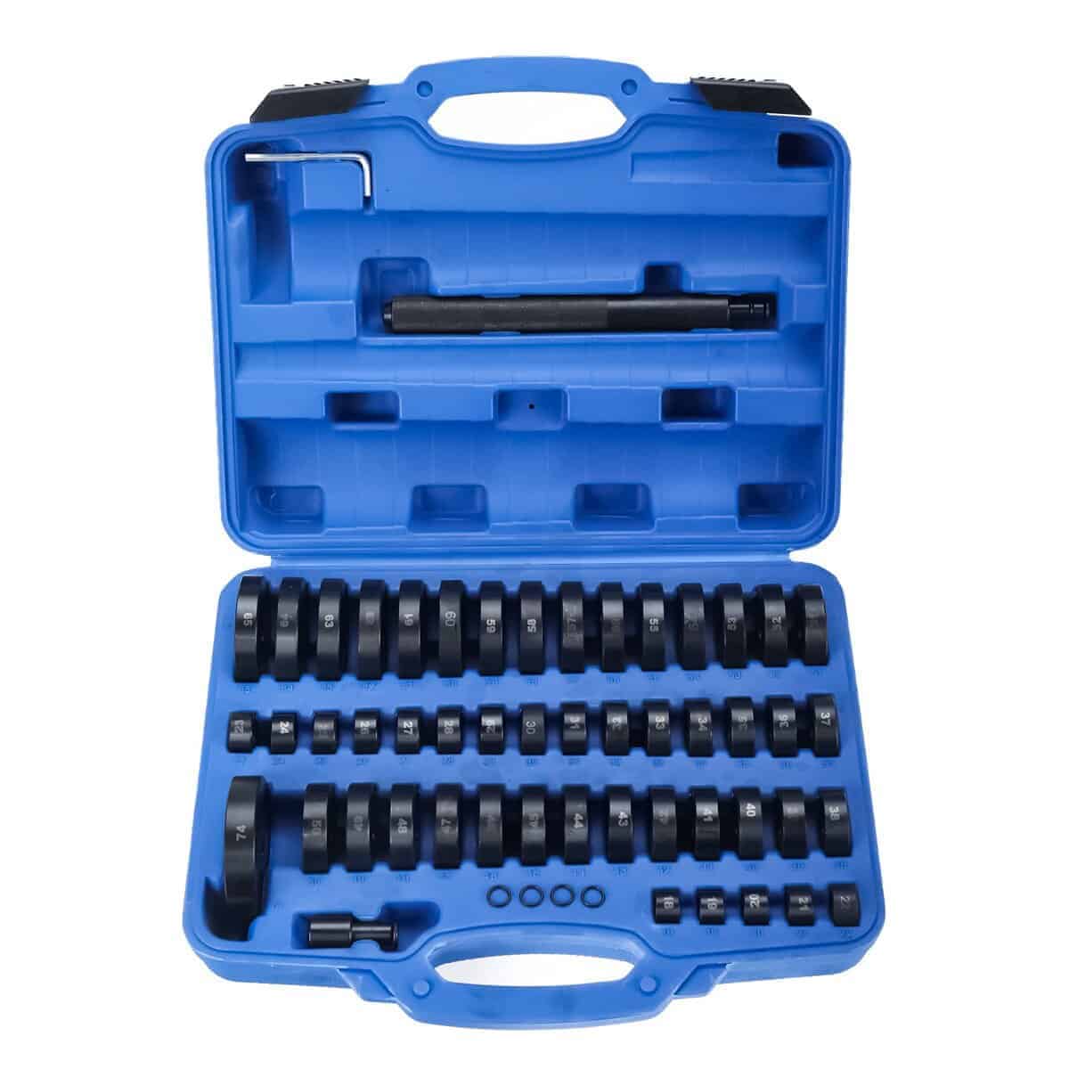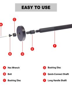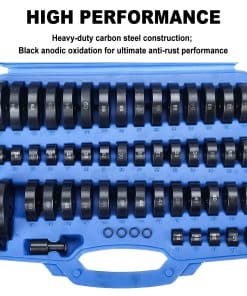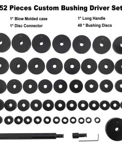 Los discos van desde 18 mm (25/32) hasta 65 mm (2-9/16) en incrementos de 1 mm más 2-29/32 74 mm. Todos los discos están conectados con un eje y tornillo de 12 mm que se conecta rápidamente a un mango de 180 mm (7 pulgadas). Todas las 50 piezas son intercambiables entre sí para obtener 50 variaciones de tamaño diferentes en un solo juego. Construcción de acero al carbono resistente; oxidación anódica en negro para un rendimiento antióxido máximo, estos componentes resistirán el uso intensivo y las caídas accidentales. Perfecto para los guerreros de fin de semana todoterreno, novatos y mecánicos profesionales. Se incluye un estuche de plástico para un almacenamiento fácil y recoger las piezas. Cómo usar: Seleccione los tamaños requeridos. Ensamble su «Driver» personalizado. Seleccione los componentes o tamaños. Ensamble la herramienta de «Drive». Golpee la herramienta y haga el trabajo. El juego de «Bushing Driver» consta de los siguientes tamaños: 18 mm, 25/32′; 43 mm, 1-11/16″; 19 mm, 3/4′; 44 mm, 1-23/32″; 20 mm, 25/32″; 45 mm, 1-25/32″; 21 mm, 27/32; 46 mm, 1-13/16″; 22 mm, 7/8″; 47 mm, 1-27/32″; 23 mm, 29/32″; 48 mm, 1-15/16″; 24 mm, 15/16″; 49 mm, 1-31/32″; 25 mm, 1″; 50 mm, 2″; 26 mm, 1-1/16″; 51 mm, 2-1/32″; 27 mm, 1-1/16″; 52 mm, 2-1/16″; 28 mm, 1-3/32″; 53 mm, 2-1/8″; 29 mm, 1-5/32″; 54 mm, 2-3/32″; 30 mm, 1-3/16″; 55 mm, 2-5/32″; 31 mm, 1-7/32″; 56 mm, 2-7/32″; 32 mm, 1-1/4″; 57 mm, 2-1/4″; 33 mm, 1-9/32″; 58 mm, 2-9/32″; 34 mm, 1-11/32″; 59 mm, 2-11/32″; 35 mm, 1-3/8″; 60 mm, 2-3/8″; 36 mm, 1-13/32″; 61 mm, 2-13/32″; 37 mm, 1-15/32″; 62 mm, 2-7/16″; 38 mm, 1-1/2″; 63 mm, 2-1/2″; 39 mm, 1-17/32″; 64 mm, 2-17/32″; 40 mm, 1-19/32″; 65 mm, 2-9/16″; 41 mm, 1-5/8″; 74 mm, 2-29/32″; 42 mm, 1-21/32″.