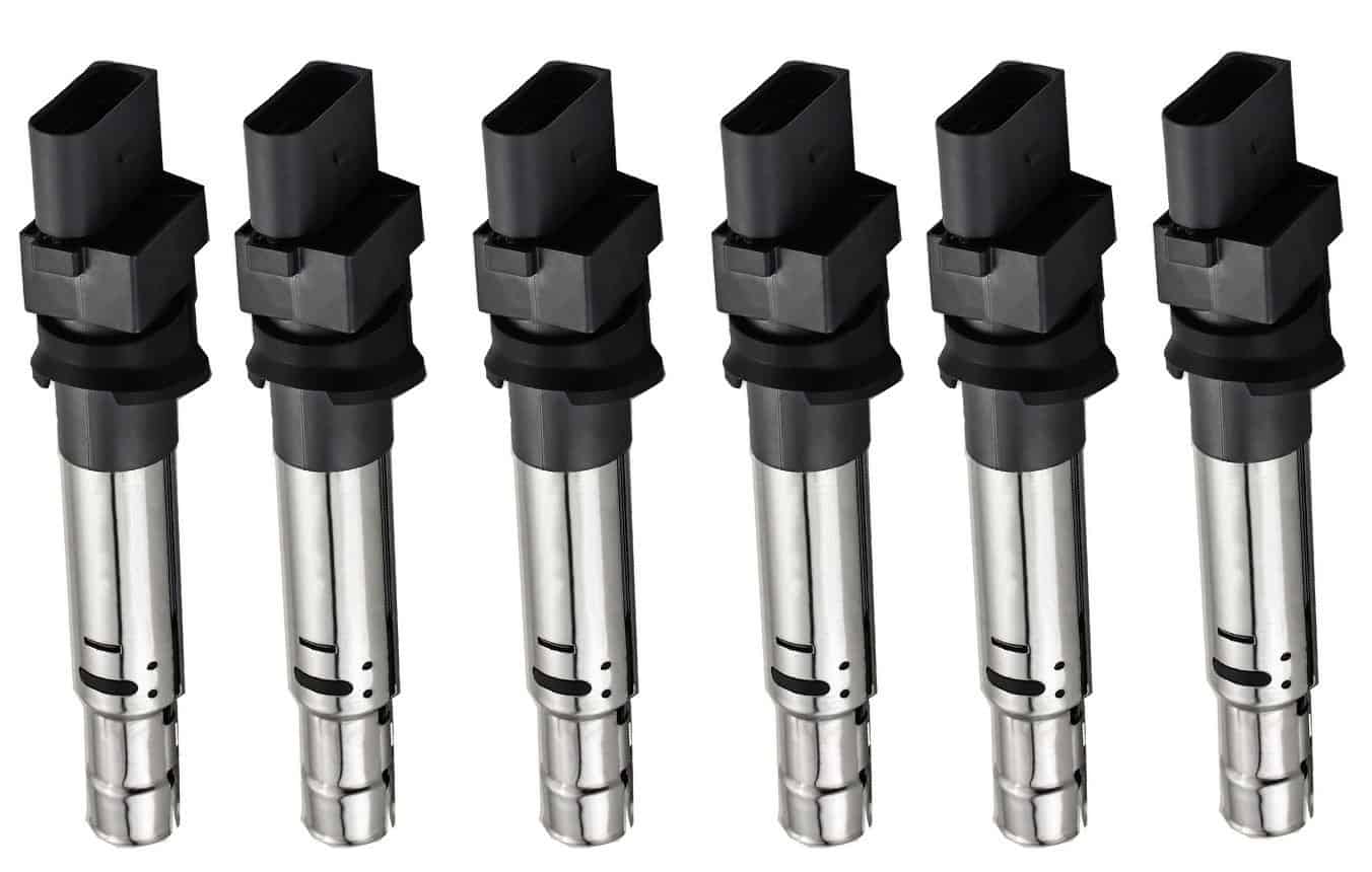 Compatibilidad: (Esta BOBINA DE ENCENDIDO se ajustará a los siguientes vehículos) br AUDI A3 QUATTRO 2006 2007 V6-3.2L br AUDI Q7 2007 V6-3.6L br AUDI TT QUATTRO 2004 2005 2006 2007 2008 2009 V6-3.2L br PORSCHE CAYENNE 2004 2005 2006 V6-3.2L br PORSCHE CAYENNE 2008 2009 2010 2011 V6-3.6L br PORSCHE CAYENNE 2008 2009 V8-4.8L br VOLKSWAGEN EOS 2007 2008 V6-3.2L br VOLKSWAGEN GOLF 2004 V6-3.2L br VOLKSWAGEN PASSAT 2006 2007 V6-3.6L br VOLKSWAGEN TOUAREG 2004 2005 2006 V6-3.2L br VOLKSWAGEN TOUAREG 2007 V6-3.6L br Paquete incluido: br 6 x Bobina de Encendido br br Las bobinas de encendido producen la alta tensión necesaria para encender la mezcla de aire/combustible en la cámara de combustión. Cuando no se reemplazan, el vehículo podría experimentar arranque nulo o dificultoso, tiempo largo de arranque, fallo de encendido y fallo del convertidor catalítico. br Nuestras bobinas de encendido son ligeras y fáciles de instalar con cobre de la más alta calidad. El diseño único de enrollado reduciría el tamaño y peso sin sacrificar la calidad. Cada bobina está diseñada para una aplicación específica, bajas emisiones y alto rendimiento energético. Eliminarán los fallos de encendido y proporcionarán el máximo voltaje.