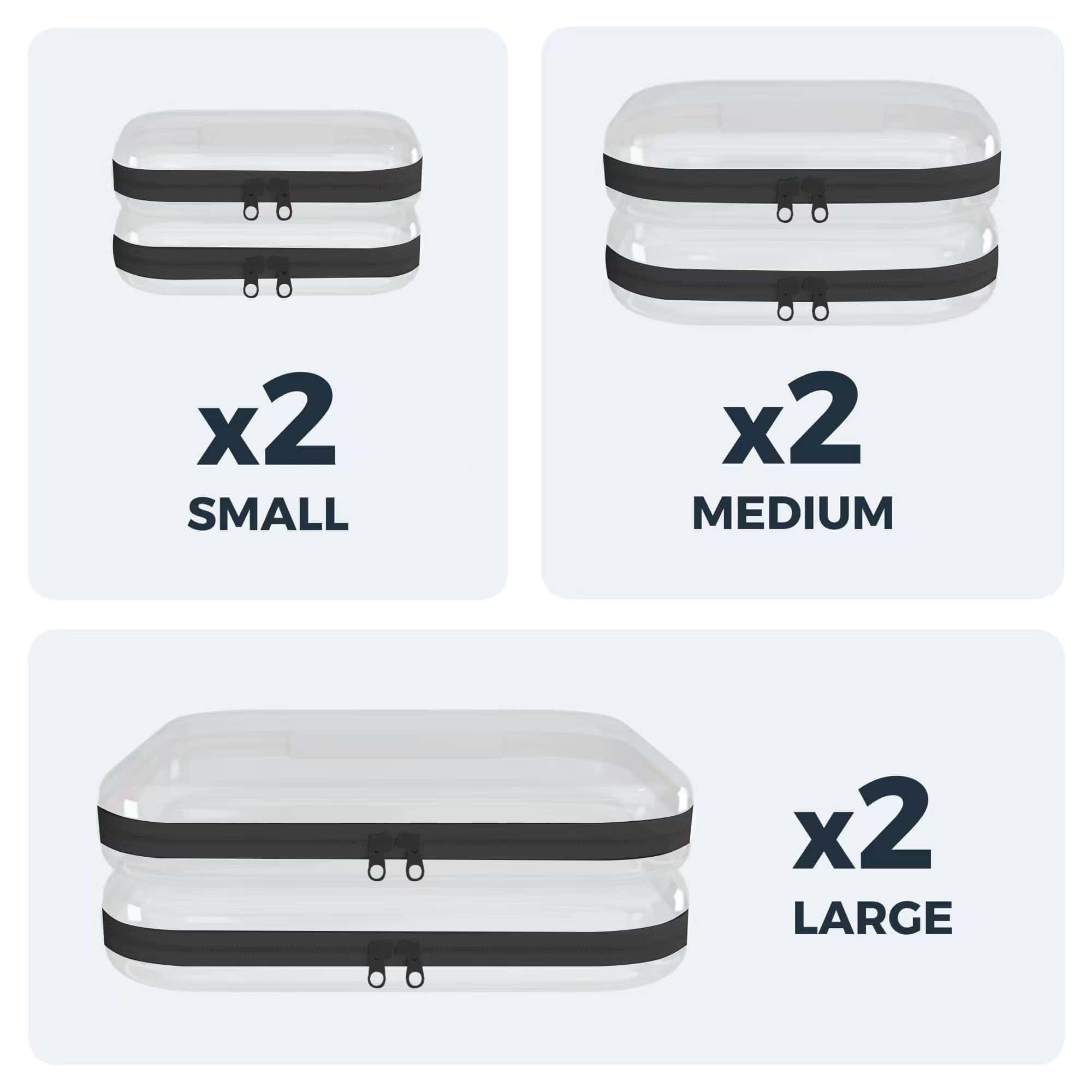 Perfectly sized for cosmetic bags with zipper (Large: 13.7″x12.2″x2″, Medium: 7″x5″, Small: 5″x3.5″). Use large cases as extra large makeup cases for palettes, medium for clear toiletry bags (toothbrush/lotions), small as clear pencil cases or jewelry organizers. Works as bags for toys organization in playrooms or makeup organizers in bathrooms.