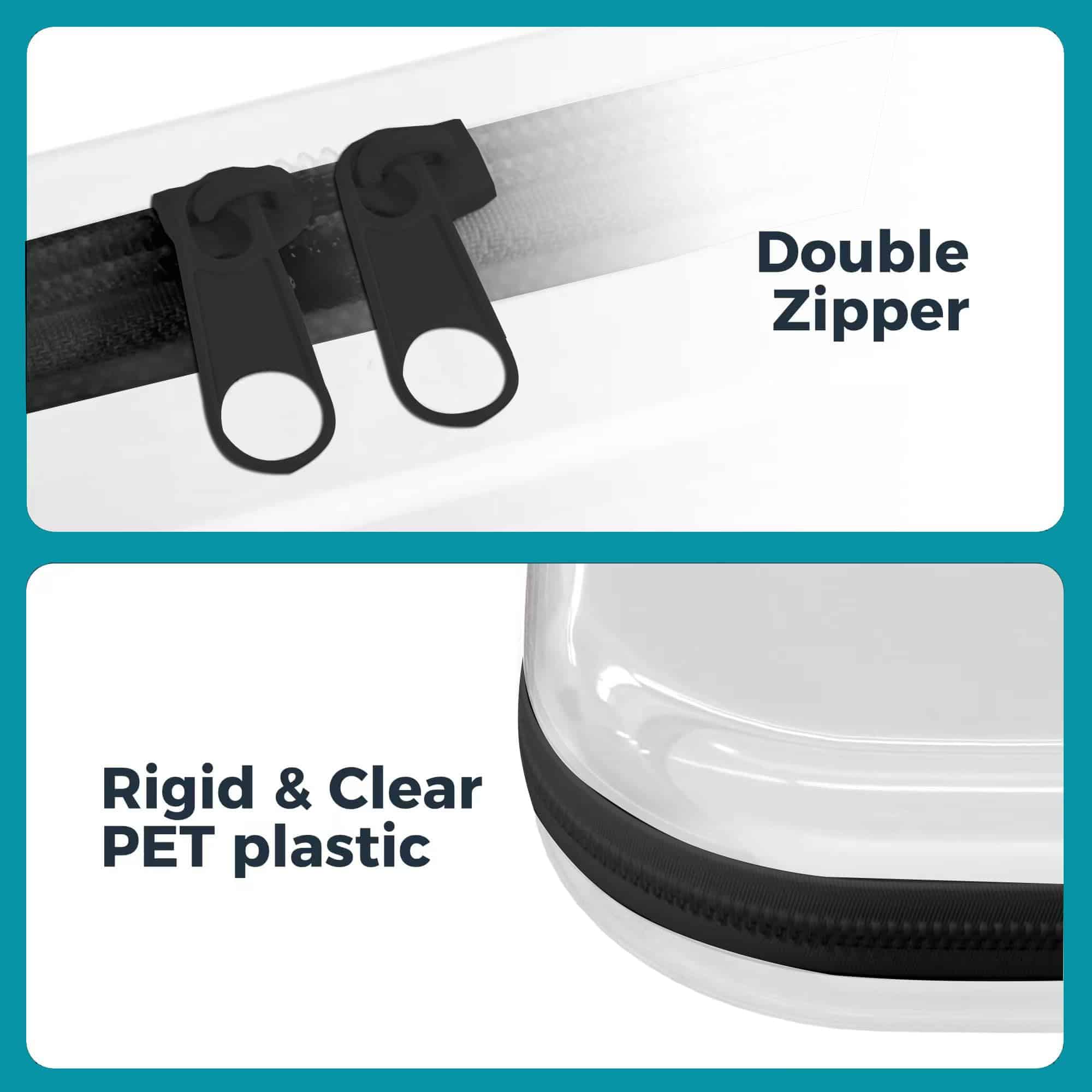 Ultra-transparent hard clear zipper case allows quick content visibility vs fabric bags. Stackable toy storage box design saves space in drawers. Layer small clear storage bags with zipper inside large cases for multi-category sorting (ex: makeup brushes + eyeliners + hair clips).