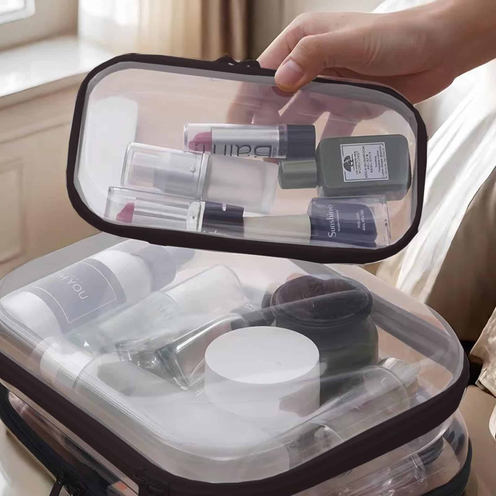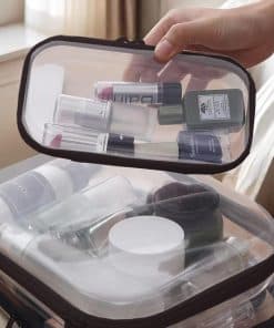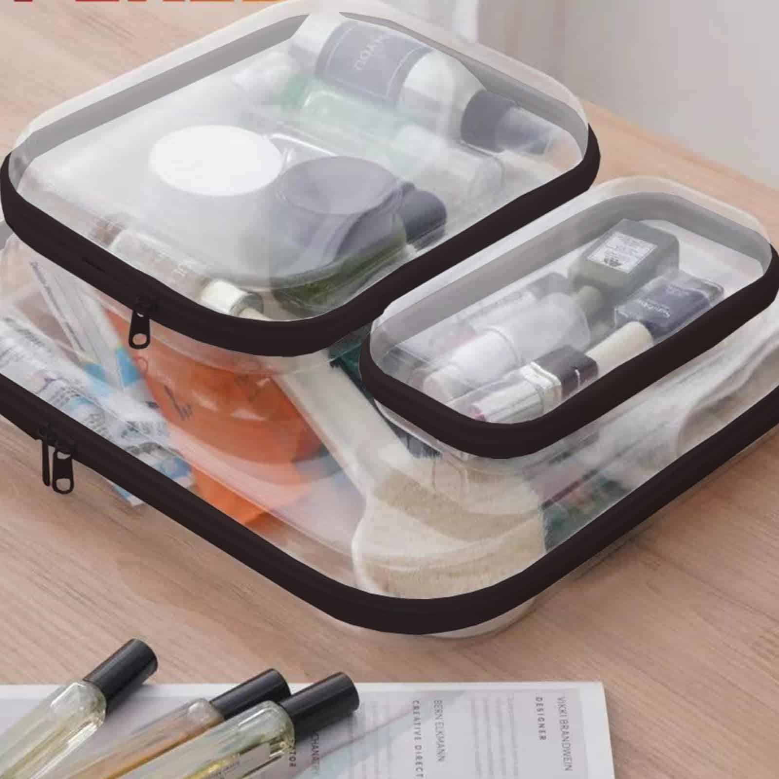 TSA-friendly transparent travel bags for toiletries let you instantly identify contents. Water-resistant hard zipper case prevents spills in luggage. Medium case fits 3-4oz bottles for carry-ons. Use small cases as clear makeup bags for lipsticks or zippered hard pouches for cables/medications.