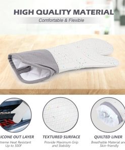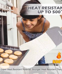 1. Manoplas resistentes al calor: Nuestras manoplas de horno están hechas de 3 capas de material de alta calidad para ser resistentes a altas temperaturas de hasta 500°F, así como bajas temperaturas de hasta -104°F. Estas manoplas pueden protegerte de quemaduras cuando manipulas sartenes o alimentos calientes al hornear, cocinar y asar a la parrilla.