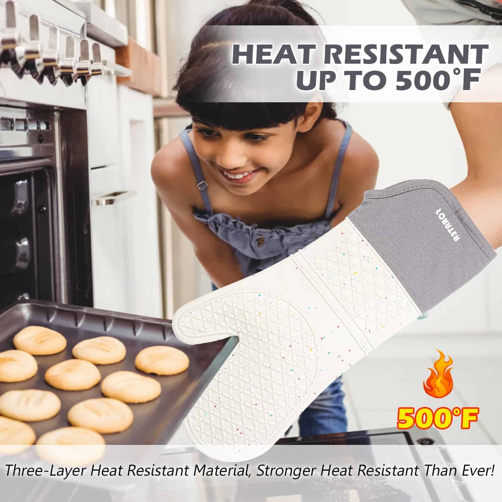 5. Gadgets de cocina imprescindibles: El paquete incluye un par de guantes de silicona para manipular ollas, sartenes, platos, bandejas o utensilios de horneado calientes mientras cocinas. Este juego de manoplas de horno no solo es una herramienta imprescindible para tu cocina, sino también un regalo perfecto para tu familia o amigos a quienes les encanta hornear y cocinar.