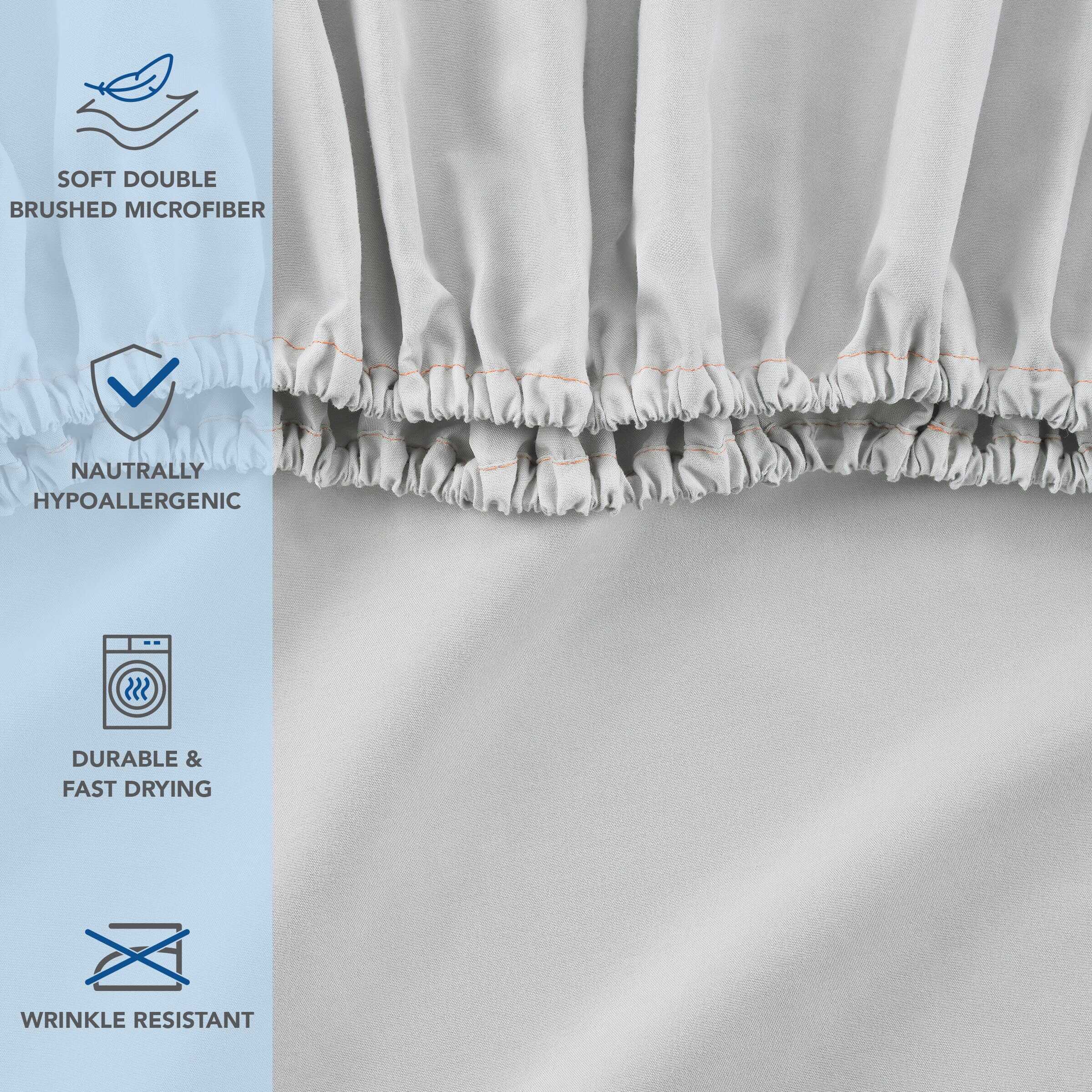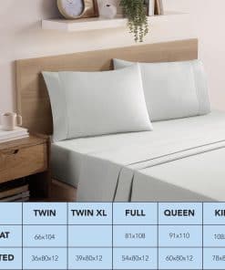 CODIFICADO POR COLORES PARA FÁCIL CLASIFICACIÓN: Nuestras sábanas planas y ajustables de microfibra tienen hilos de dobladillo codificados por colores, lo que facilita la identificación de los tamaños y su clasificación adecuada después del lavado. El personal de limpieza no perderá tiempo buscando las sábanas del tamaño correcto, lo que ahorra dinero en mano de obra. Los colores de los hilos del dobladillo son Twin – negro, Twin XL – gris, Full – rojo, Queen – azul y King – verde. Twin XL es solo ajustable.