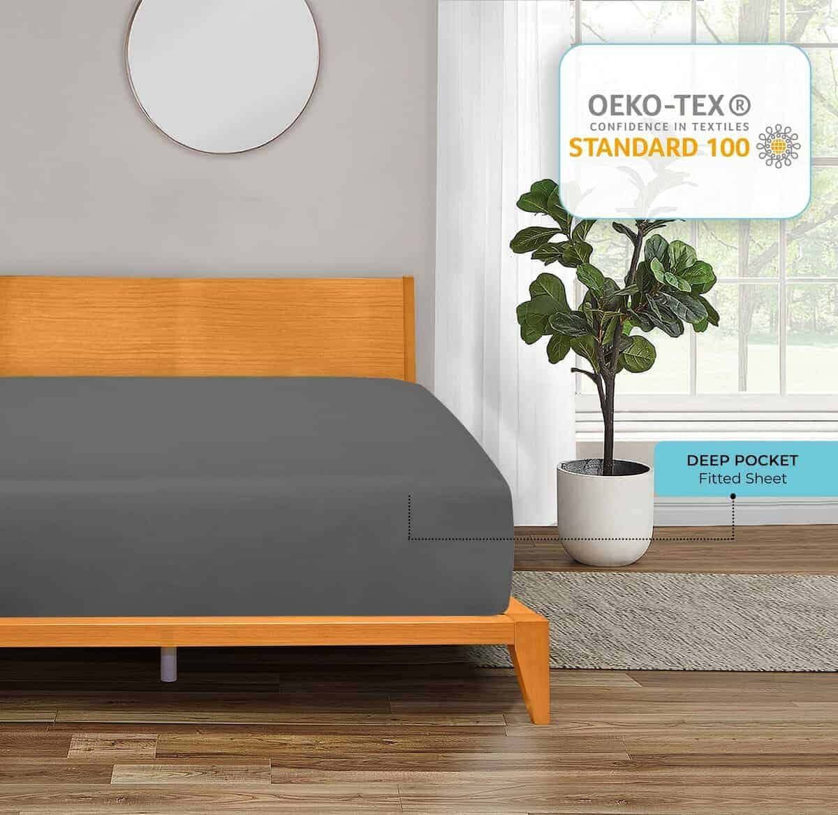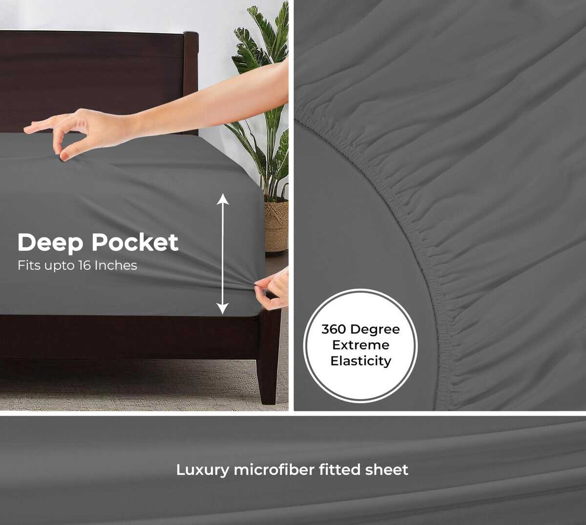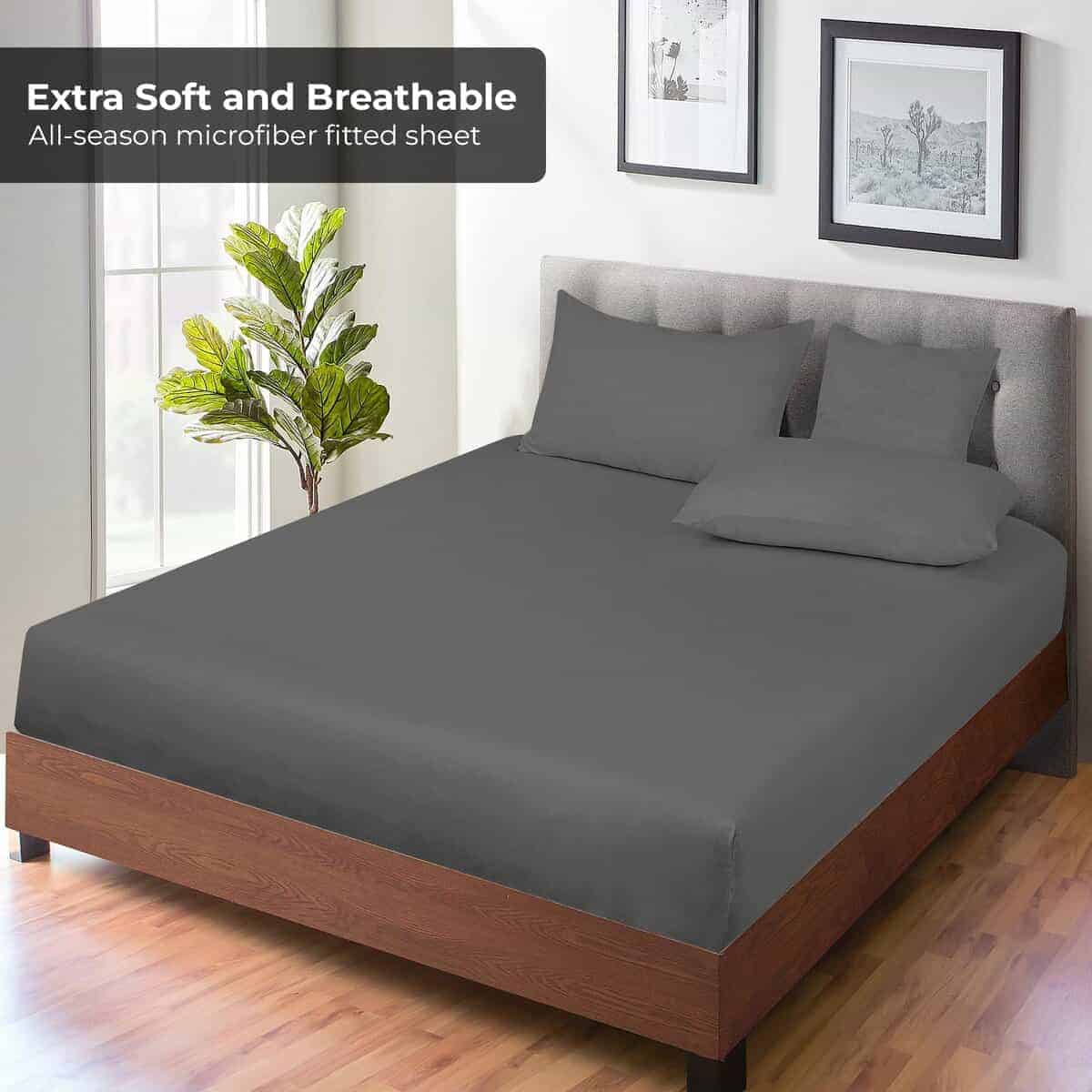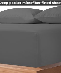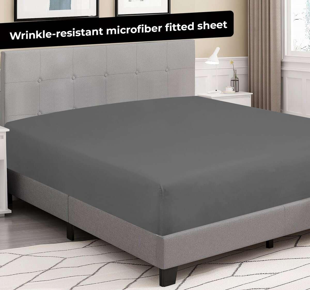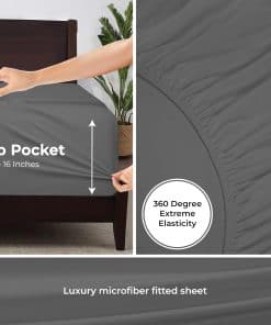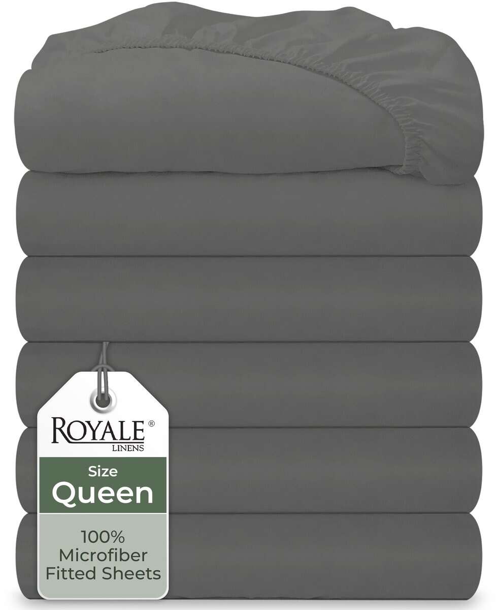 ROYALE LINENS 6 Pack Queen Fitted Sheet Set – Bottom Sheet – Ultra Soft & Breathable – Brushed 1800 Microfiber – Wrinkle & Stain Resistant – Hotel Quality Deep Pocket Stretch Up to 16″ (Queen, Grey)