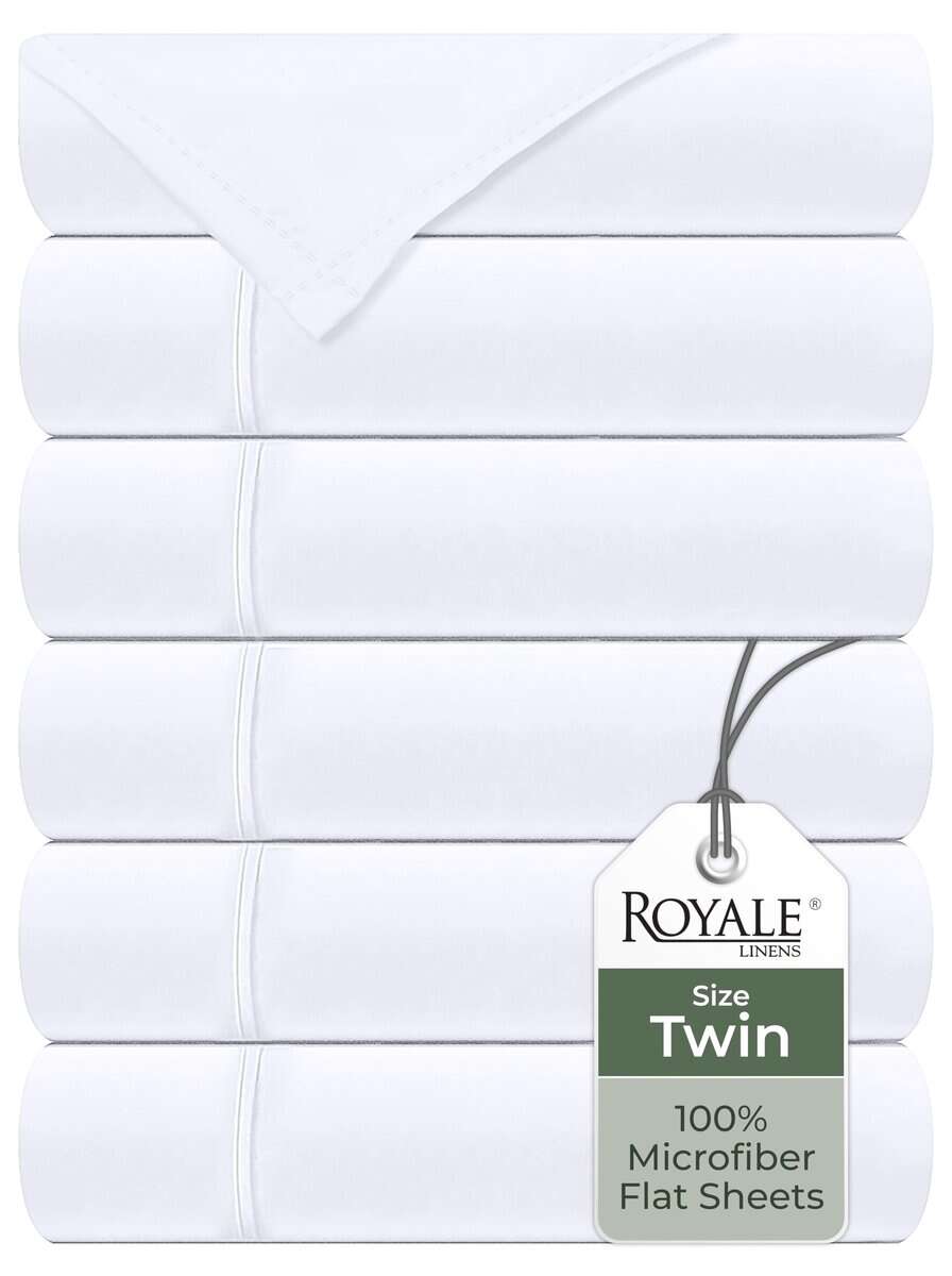 1. PACK DE VALOR Y TELA PREMIUM: El Juego de Sábanas Blancas a Granel de Royale Linens viene en un paquete de 6. Las sábanas superiores están fabricadas con la mejor calidad de microfibra de doble cepillado del 100%. Haciéndolos transpirables, cómodos y acogedores. Lavar antes del primer uso para desbloquear la suavidad.