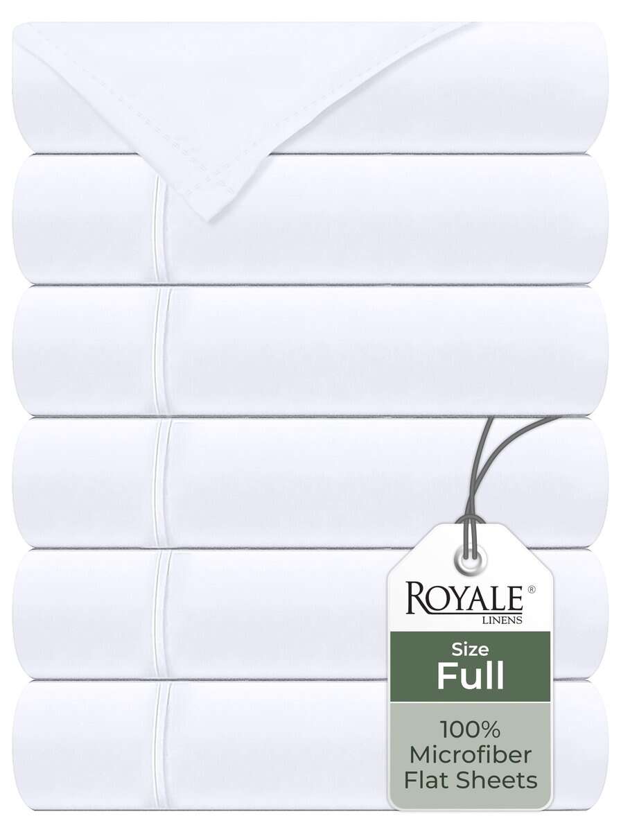 1. PACK DE VALOR Y TELA PREMIUM: La sábana plana a granel de Royale Linens viene en un paquete de valor de 6. Las sábanas superiores están fabricadas con la mejor calidad de microfibra de doble cepillado al 100%. Haciéndolas transpirables, cómodas y acogedoras. LAVE ANTES DEL PRIMER USO PARA DESBLOQUEAR LA SUAVIDAD. 2. CALIDAD DE HOTEL Y DIMENSIONES: La sábana plana tamaño completo mide 81 por 96 pulgadas con elegantes 4 pulgadas de ribete en Z añadiendo un diseño único y elegante. Estas sábanas planas son ultra suaves. La tela es transpirable, resistente a la decoloración y a las arrugas. Son amigables con su piel y cabello. También es un material muy cómodo y genial para dormir. Cálido en invierno, fresco en verano. Buenas costuras y mano de obra exquisita lo hacen duradero. 3. CÓMODO Y MULTIUSO: Crea el dormitorio de tus sueños con nuestra impresionante colección y diseño elegante de sábanas planas. La sábana plana a granel de Royale Linens te proporciona un confort irresistible, descanso y relajación. Lujo de estilo hotel, suavidad suntuosa y aspecto clásico. La mejor opción para sábanas de mesa de masajes, sábanas de hospital o incluso se podría usar como esenciales de hotel o Air Bnb. Haciendo cortinas para la decoración del hogar. 4. CERTIFICADO OEKO-TEX: Las sábanas planas están certificadas estándar 100 por Oeko Tex. Según las pautas, estos productos están probados para sustancias nocivas y se producen de manera ambientalmente amigable y socialmente responsable. Sostenible de acuerdo con las pautas de OEKO-TEX. 5. INSTRUCCIONES DE CUIDADO: Las sábanas superiores de Royale Linens están diseñadas para resistir lavados repetidos. Lavar a máquina en frío, solo blanqueador sin cloro, secar en secadora o planchar a temperatura normal.