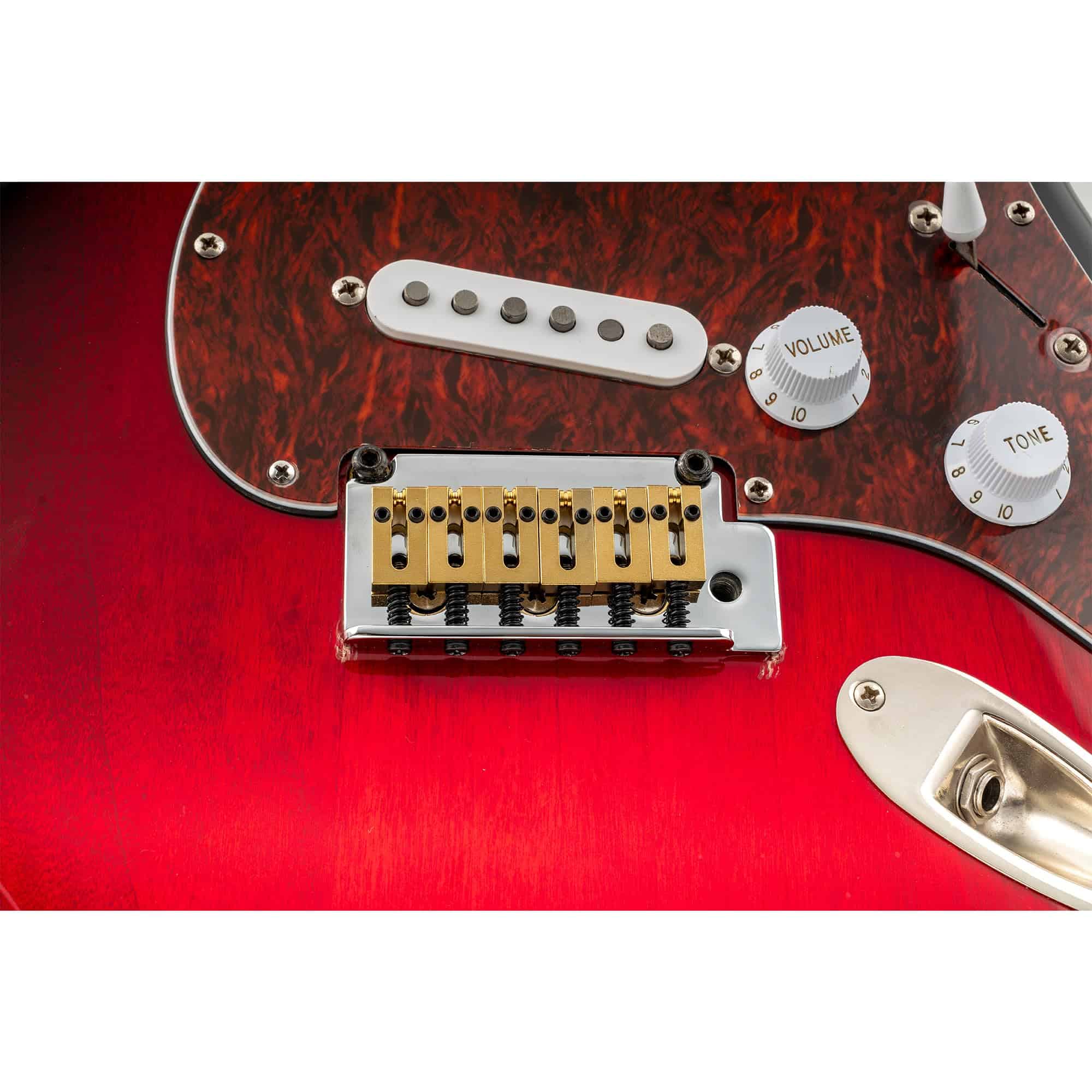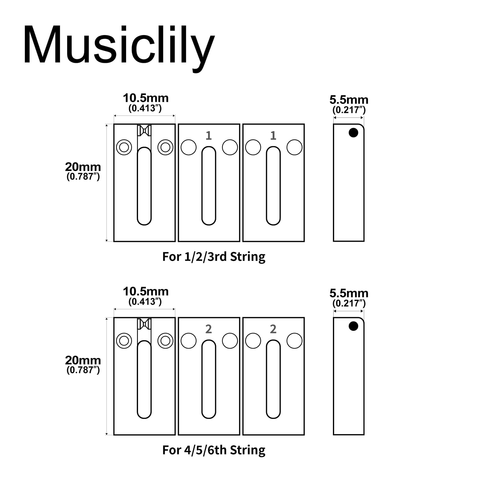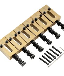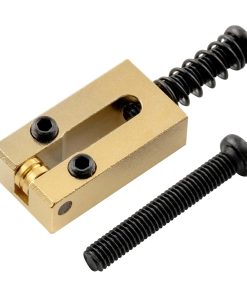 Juego de 6 selletas de puente de guitarra eléctrica estilo Strat Tele de 10.5mm de latón macizo y moderno con rodillo, doradas. Estas selletas ofrecen una construcción sólida y duradera, proporcionando una mejora en el sostenimiento y la estabilidad de afinación de tu guitarra eléctrica. Además, su diseño moderno de rodillo rectangular reduce la posibilidad de rompimiento de cuerdas y mejora la estabilidad de afinación. Incluye tornillos y muelles de acero para una fácil instalación y ajuste.