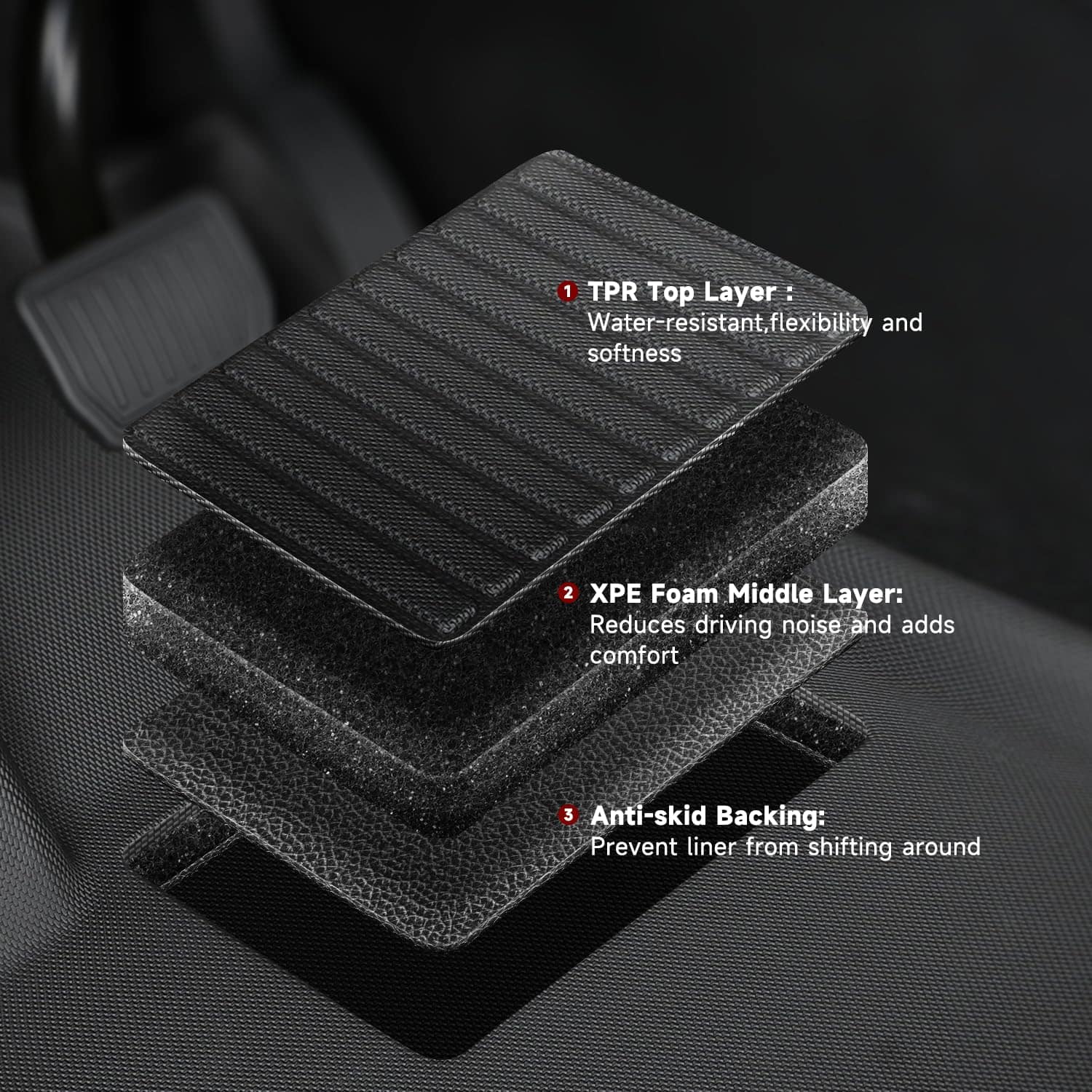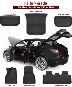 MOTIBACK presenta este juego de 6 tapetes de piso diseñados específicamente para el Tesla Model Y, con un ajuste perfecto que complementa la estética minimalista del vehículo. Fabricados con TPE de alta calidad, estos tapetes son más gruesos que la mayoría en el mercado, lo que proporciona una excelente protección contra la abrasión, el calor y las inclemencias del tiempo.