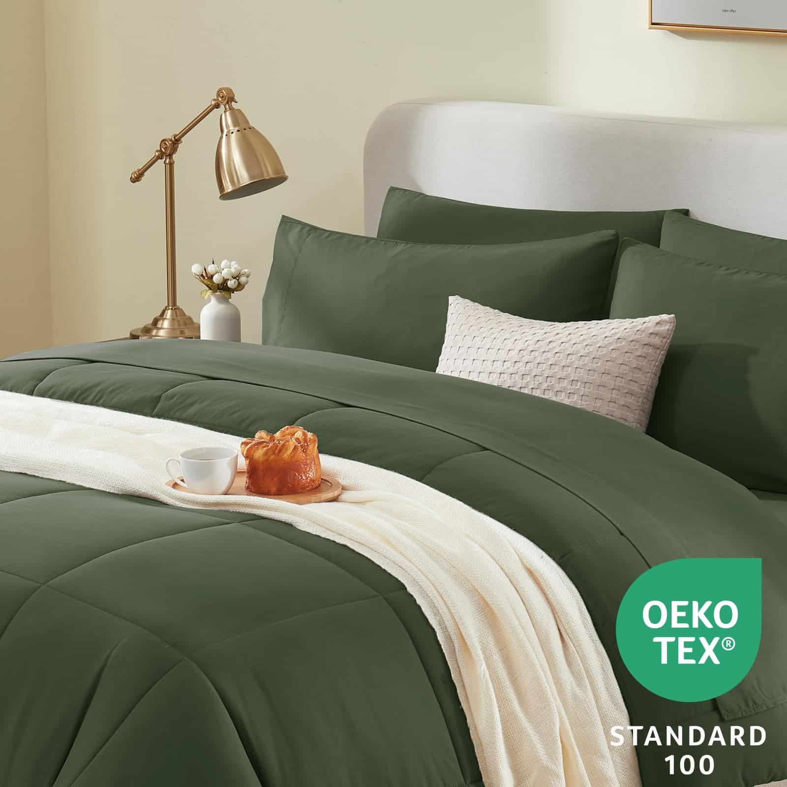Elaborado diseño: Este juego de ropa de cama incluye una sábana ajustable con bolsillo para colchones de hasta 14″ de profundidad, fundas de almohada con cierre de sobre para mantener seguras tus almohadas, y el edredón presenta un pespunteado duradero que ofrece un aspecto sofisticado junto con la sencillez y también mantendrá el relleno estable en su interior. Cómo nos adaptamos a su tamaño: El juego de cama completo incluye 1 edredón (82″x86″), 1 sábana plana (81″x96″), 1 sábana ajustable (54″x75″+14″) y 4 fundas de almohada (20″x30″). Cuidado fácil: Lavable a máquina en agua fría, planchar a baja temperatura para eliminar arrugas. Solo ciclo suave, no usar lejía, no limpiar en seco, se seca rápidamente en secadora a baja temperatura. Servicio satisfactorio: Como su satisfacción es de suma importancia para nosotros. CozyLux se compromete a ofrecerle productos premium y un servicio atento. No dude en contactarnos si tiene alguna pregunta sobre nuestros productos. Haremos todo lo posible para resolver los problemas lo antes posible.