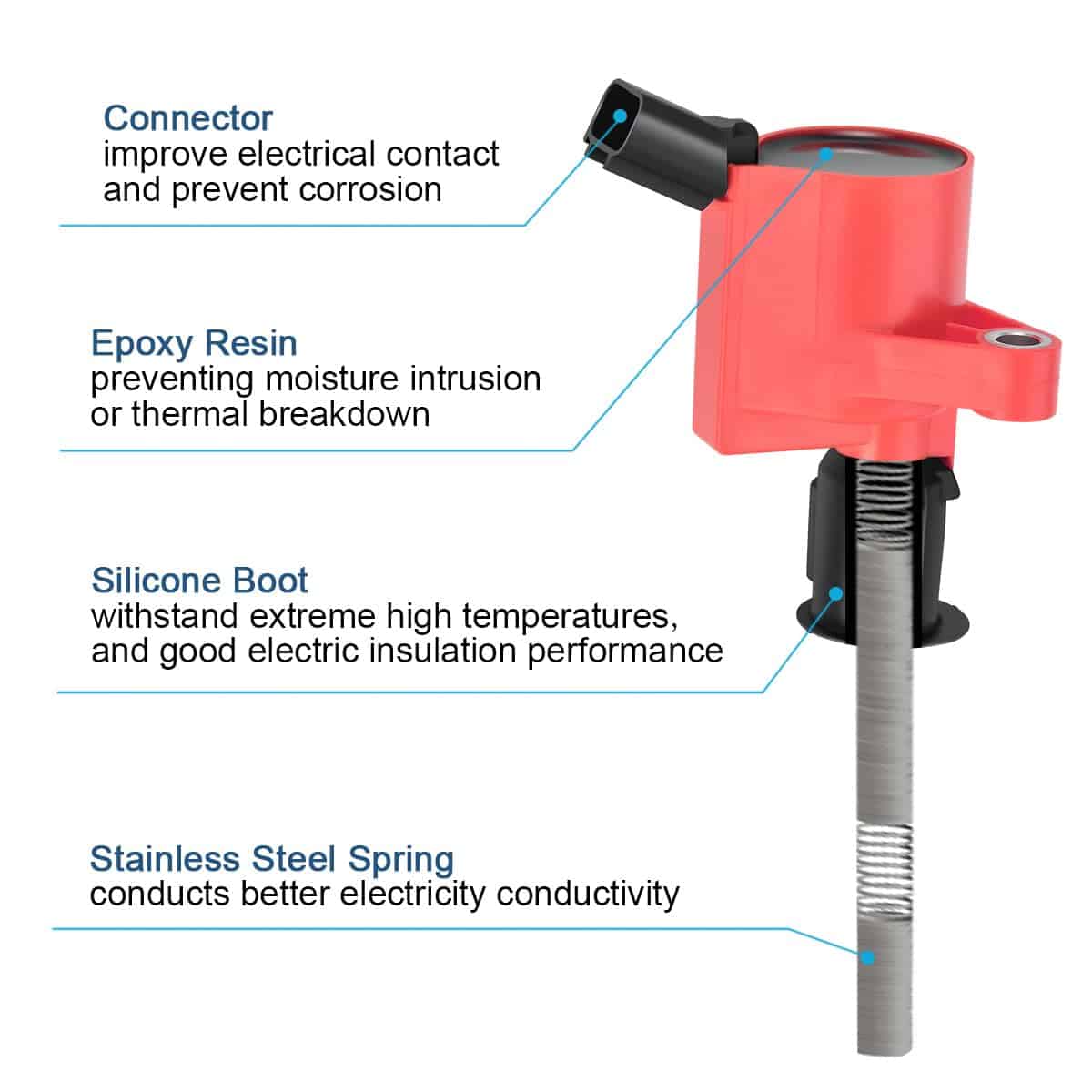 4. Material de Alta Calidad –Ofrece Alta Resistencia Eléctrica, chispa fuerte en las bujías, y es resistente a la corrosión y abrasión.