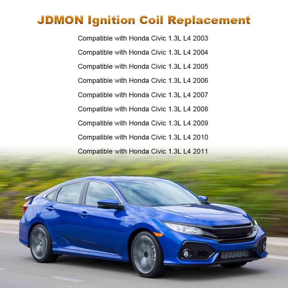 Juego de 8 bobinas de encendido JDMON compatibles con los siguientes vehículos: Honda Civic 2003-2011. Diseñadas con materiales de alta calidad que cumplen o superan los estándares OEM, estas bobinas de encendido tienen una alta tolerancia a altas temperaturas, lo que las hace resistente a las grietas, agujeros y defectos que suelen causar problemas de falla. Antes de comprar, asegúrese de que las bobinas sean compatibles con su vehículo consultando la información de descripción o utilizando los números de parte intercambiables en la parte superior de la lista. La instalación de partes automotrices requiere conocimientos y habilidades profesionales, por lo que se recomienda completarla bajo la orientación de un mecánico profesional.