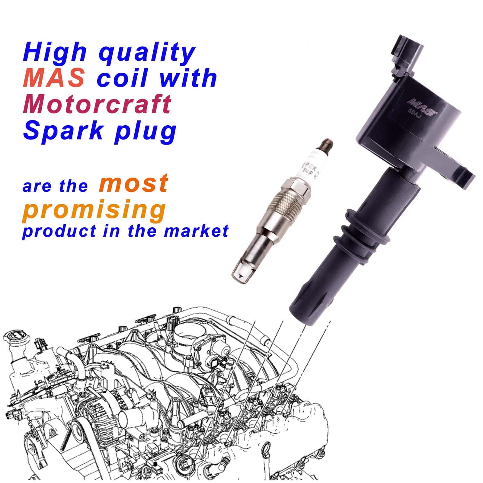 Juego de 8 bujías de platino MAS y 8 bobinas de encendido