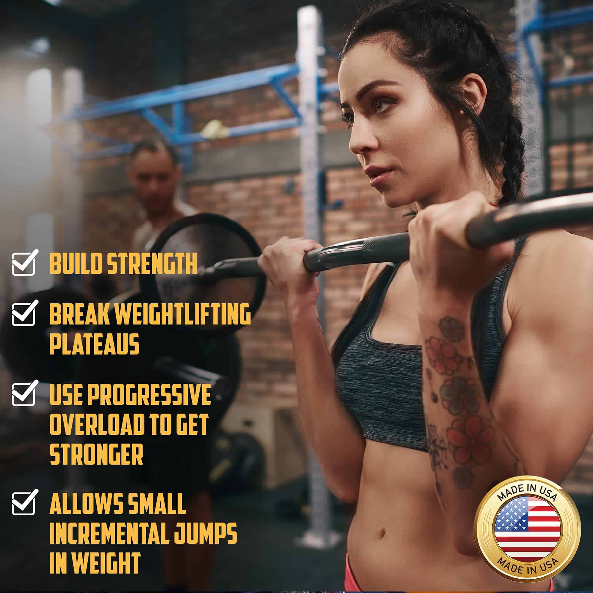 1. JUEGO DE 8 PLACAS DE PESO DE ORIFICIO CENTRAL ESTÁNDAR DE 1″: Cada paquete viene con 8 placas de peso micro amarillas de .50LB que proporcionan el ajuste perfecto para barbellas y mancuernas estándar de 1″ mientras ocupan un espacio mínimo en una manga de barra. 2. CONSTRUCCIÓN DURADERA: Nuestras placas de barra para entrenamientos de gimnasio están hechas de acero sinterizado resistente que, junto con el acabado duradero recubierto de polvo negro, aseguran que proporcionen a largo plazo, ofreciendo más flexibilidad para todos los niveles de fuerza.
