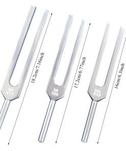 Especificaciones: Estos diapasones son ideales para sanación sonora, aliviar dolores de cabeza, limpiar cristales, instrumentos de meditación, etc. El color brillante los convierte en una elección de regalo perfecta. Ideal para meditación y relajación. Pueden ser una buena herramienta para reducir el estrés y los nervios. Emiten un tono largo y claro que proporciona paz mental y relajación profunda. También se pueden utilizar para golpear las articulaciones y aliviar dolores y rigidez. Se incluye una bolsa de terciopelo suave para proteger los diapasones antes o después del uso diario. Paquete incluye: 9 diapasones (174 Hz, 285 Hz, 396 Hz, 417 Hz, 528 Hz, 639 Hz, 741 Hz, 852 Hz, 963 Hz), 1 bolsa de terciopelo suave, 1 martillo de madera. Consejos: Para mantener el sonido de los diapasones más preciso, golpear con un martillo de silicona o madera, en lugar de barras duras. Recuerda limpiar los diapasones con el paño de limpieza de microfibra adjunto después de cada uso y almacenar en una bolsa de almacenamiento seca. Mantén el martillo de madera seco y alejado del sol. Si tienes preguntas o consejos sobre el producto, contáctenos, nuestro equipo de servicio al cliente está siempre disponible para ayudarte. Desarrollaremos más productos en el futuro, si tienes sugerencias, háznoslo saber. Más frecuencias de diapasones disponibles en nuestra tienda en línea.