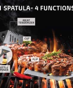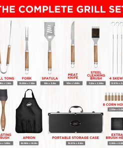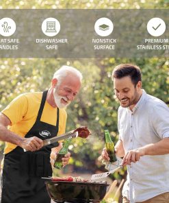 Completa tu juego de parrilla con este set de 21 piezas de accesorios para parrilla Kaluns. Este completo set incluye un delantal con 4 bolsillos para guardar herramientas, pinzas, tenedor, cuchillo y pincel para untar, cepillo para parrilla con cabeza extra, espátula de 4 funciones, 4 pinchos y 8 soportes para mazorcas, y un estuche de almacenamiento portátil. Está hecho de acero inoxidable de alta calidad que nunca se oxida ni se agrieta, es resistente al calor y apto para lavavajillas. El material premium de acero inoxidable garantiza durabilidad y longevidad. Además, viene con un estuche de almacenamiento de aluminio negro ligero que protegerá y mantendrá tus utensilios en excelente estado. Este estuche es portátil y fácil de llevar contigo cuando estás de viaje, acampando o de excursión. Estas herramientas de parrilla de lujo están perfectamente diseñadas para satisfacer tus necesidades de regalar, incluyen todo lo que necesitas para una barbacoa veraniega y tienen lazos personalizados para colgar. Es un lujoso regalo de inauguración de la casa, Día del Padre y Navidad. Haz de la parrilla una experiencia profesional con este set de accesorios para parrilla Kaluns. ¡No dudes en comunicarte con nosotros si tienes alguna inquietud o problema que puedas encontrar!