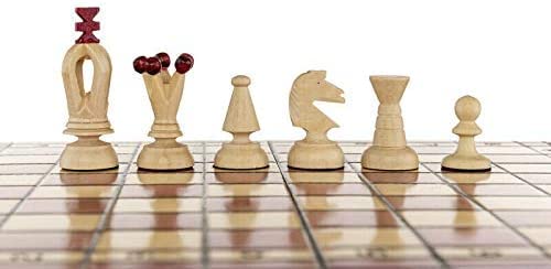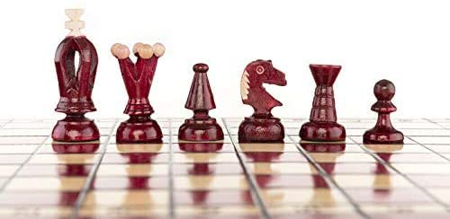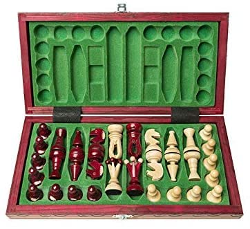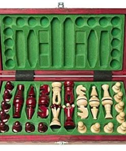 Ajedrez hecho de madera de carpe Pintado en medio mate Tamaño de la caja: 31 cm x 15.50 cm / 12.5″ x 6″ Altura del rey: 66 mm / 2,6″ Altura del peón: 33 mm / 1,3″ Bandeja de inserción para piezas Tablero de madera plegable Hermoso diseño