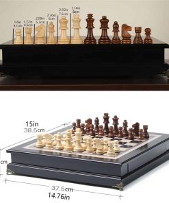 La superficie de esta carta de ajedrez está tratada con un nuevo proceso de pintura de piano, similar a la superficie de un piano, cada paso agrega un sentido de nobleza, es un regalo bien recibido para todos los amantes del ajedrez, adecuado para cumpleaños, fiestas, Navidad, Día de los Niños, aniversarios y más. Las piezas únicas de este juego de mesa están hechas de madera maciza con una artesanía exquisita para dar vida a las piezas. Fáciles de agarrar, la parte inferior está cubierta con un fieltro delgado para proteger el tablero de ruidos molestos y evitar rayar el tablero. Diseño de cajón fácil de almacenar: este set de ajedrez de madera tiene un cajón de almacenamiento incorporado, el diseño de ranura independiente permitirá que sus piezas se coloquen ordenadamente, no es fácil de perder, colocado de manera ordenada más inteligente y conveniente, más profesional y práctico, disfrute de la diversión de jugar al ajedrez. Tamaño perfecto: 15″ x 15″ x 3.7″ para profesionales y principiantes del ajedrez. Doble Damas y tablero de ajedrez perfecto – todas las damas, torres, alfiles, caballos y peones están proporcionados, con dos damas adicionales. El ajedrez estimula la mente y la imaginación de adultos y niños, mejora el pensamiento estratégico, las habilidades sociales, el pensamiento lógico y analítico, y desarrolla enfoque y creatividad en equipo. Decoración superior: este tablero de ajedrez exquisitamente diseñado con piezas de ajedrez le permite divertirse sin límites en fiestas, reuniones familiares y reuniones, y también puede colocarlo en la sala de estar cuando no esté en uso. Es una excelente decoración.