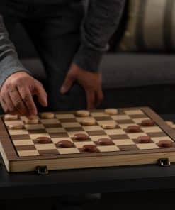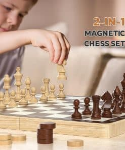 Experimenta la versatilidad de nuestro juego de ajedrez magnético premium, diseñado para mejorar tu disfrute del juego en cualquier entorno. Ya sea que estés relajándote en el sofá, descansando en la sala o incluso en un viaje en automóvil lleno de baches, este juego de ajedrez y damas magnético es tu compañero perfecto. Fabricado con pintura no tóxica y segura, nuestro tablero de ajedrez cuenta con un acabado protector que protege contra arañazos, garantizando una experiencia de juego segura para niños y mascotas. La madera de pino de alta calidad utilizada en su construcción se procesa meticulosamente para ser suave y libre de astillas, priorizando la seguridad y comodidad. Las piezas de ajedrez magnéticas se adhieren de manera segura al tablero durante el juego, evitando desplazamientos accidentales y ofreciendo un placer de juego ininterrumpido. En su interior, el set cuenta con insertos de espuma integrados que sostienen de manera segura las piezas en su lugar, facilitando su transporte y extendiendo la vida útil del producto. Portátil y ligero, con medidas de 11.4 x 11.4 x 0.98 pulgadas y 2.98 libras, el tablero plegable cabe fácilmente en tu equipaje, asegurando que puedas disfrutar de tu juego dondequiera que vayas. Hecho a mano con materiales de madera premium, nuestro juego de ajedrez ofrece una experiencia táctil lujosa, haciendo que cada movimiento sea un deleite. Este juego de ajedrez y damas magnético es la elección de regalo perfecta para principiantes y entusiastas del ajedrez por igual, combinando la jugabilidad estratégica del ajedrez con la diversión y simplicidad de las damas. Es un set de juego único y versátil, ideal para reuniones familiares, noches de juegos o tranquilas veladas en casa. ¿Por qué conformarte con lo ordinario cuando puedes disfrutar de experiencias de ajedrez extraordinarias con nuestro juego de ajedrez y damas magnético