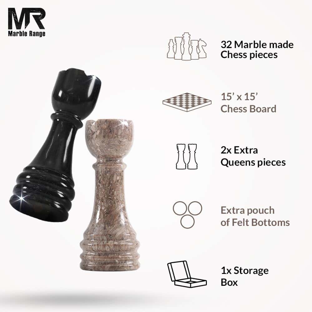 Juego de Ajedrez de Mármol de 15″ Pulgadas Hecho a Mano