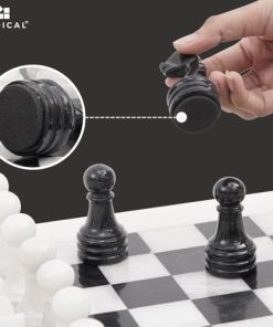 Nunca eres tan viejo como para ser un jugador nuevamente. Es hora de traer un exclusivo juego de ajedrez blanco y negro Estilo Staunton completamente hecho a mano. Este moderno juego de ajedrez está fabricado con la mejor calidad de mármol teniendo en cuenta cada aspecto. Un atributo que hace que este juego de ajedrez de mármol sea más atractivo es su brillo intenso con el toque moderno de lujo. No solo es un juego de ajedrez de mármol, sino que cada una de las 32 figuras de ajedrez está fabricada teniendo en cuenta cada detalle. Este juego de ajedrez de mármol blanco y negro convertirá inevitablemente su tablero en un campo de batalla. No solo con fines de entretenimiento, pero este juego de ajedrez de mármol también se puede regalar a tu verdadero amigo jugador. Para brindarte una mayor satisfacción, viene en un empaque adecuado y frágil. Este juego de ajedrez de mármol también puede servir como una innovadora decoración del hogar en tu colección de juegos. Este juego de piezas de ajedrez de mármol seguramente hará que tu victoria y la derrota de los demás sean memorables. Este fin de semana, ¿por qué no ser diferente?