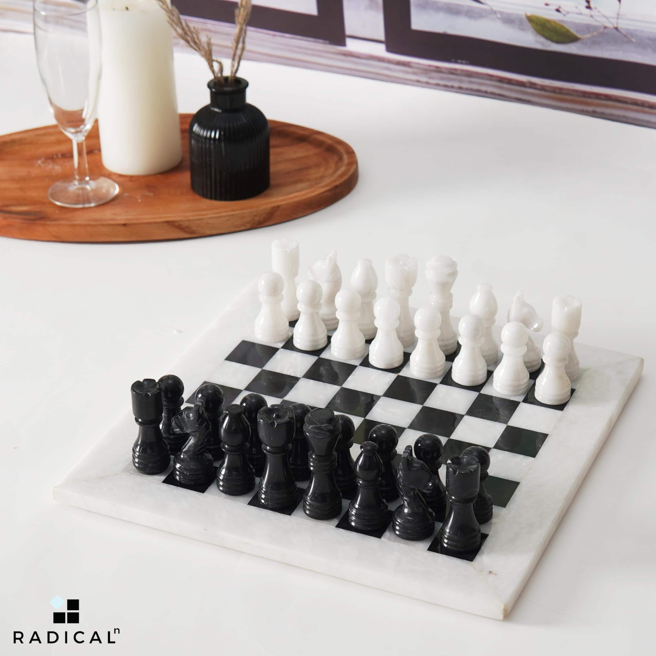 Juego de ajedrez de mármol Radicaln de 12 pulgadas blanco y