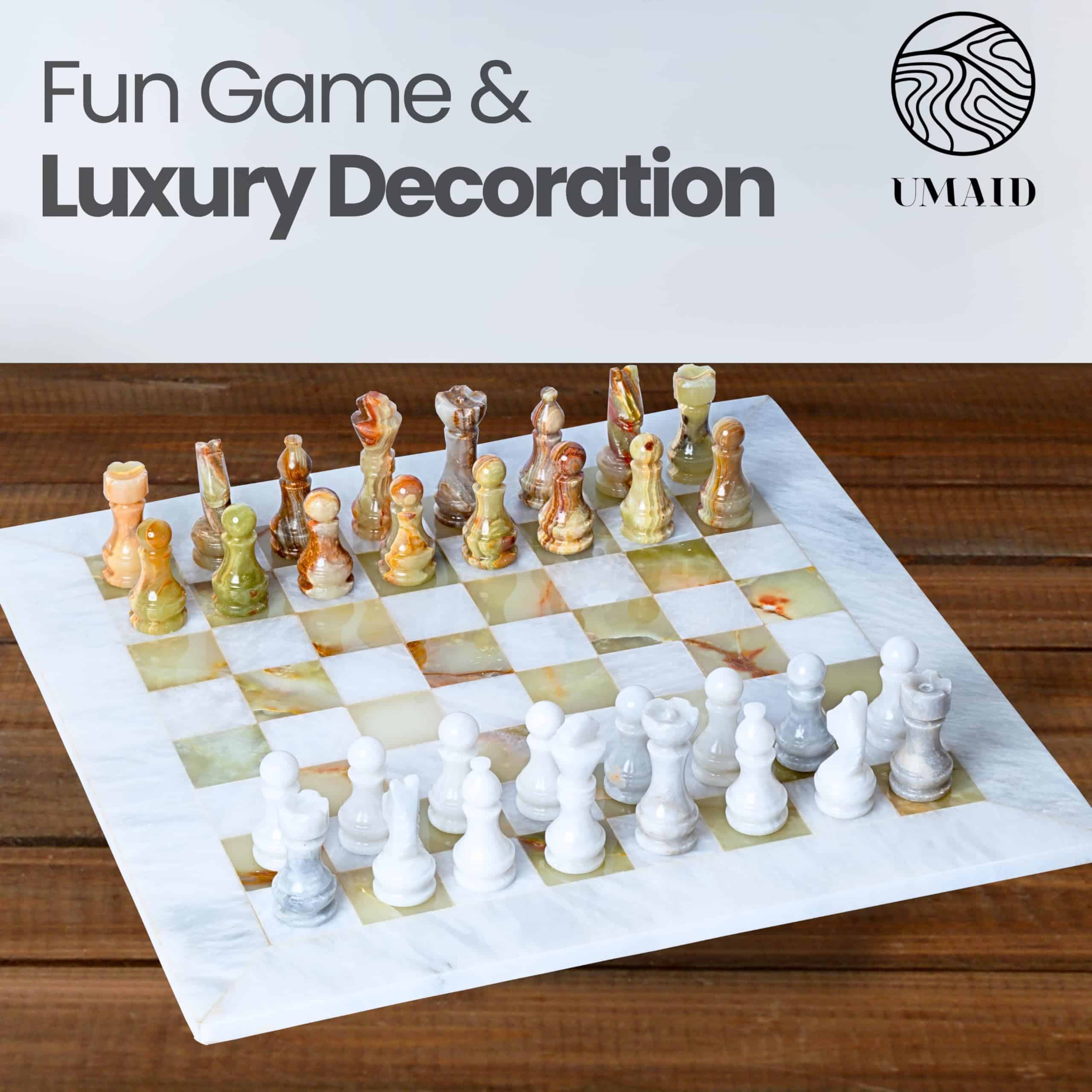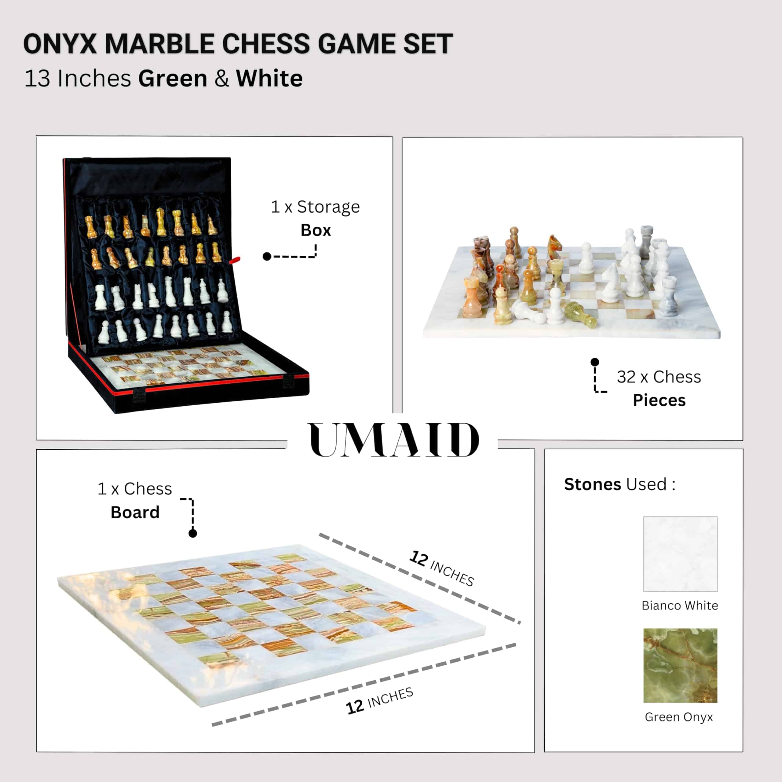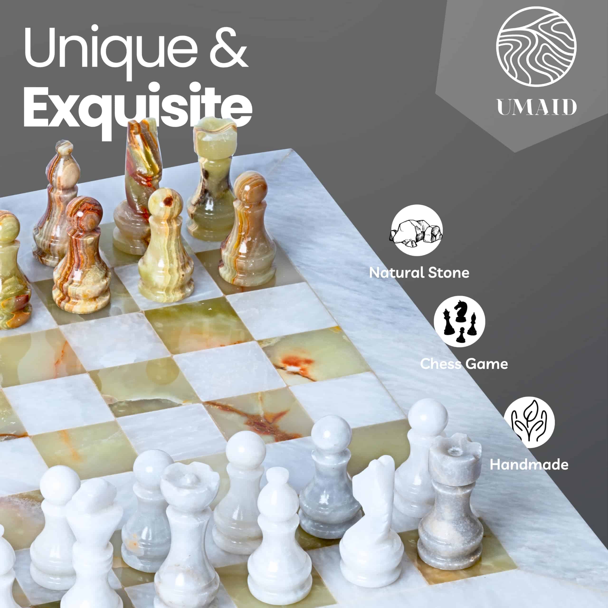 Juego de Ajedrez de Mármol Verde Onix Hecho a Mano UMAID,