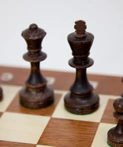 Tournament No.5 Staunton European Wood Chess Set., King 3.54″(9cm), Queen 3.27″(8.3cm), Pawn 1,73″ (4.4cm). Board Measures 18.9″W x 1.97″H x 18.9″D (48cm x 5cm x 48cm). Squares measures 1.97″x1.97″(5cm x 5cm). Board is made from beech, birch, mahagony and sycamore. Felt botton chessmen are made from hornbeam.