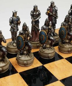 Este listado es para un nuevo juego de hombres de ajedrez pintados a mano. NO TABLERO. Los hombres son de resina sólida, pintados a mano y tienen bases de fieltro. – Rey: 3 1/4″ – Reina: 3 1/8″ – Alfil: 3″ – Caballero: 2 3/4″ – Torre: 2 3/4″ – Peón: 2 5/8″ – Diámetro de la base – 1″ – Peso total de las piezas: – 1.9 libras – Los hombres vienen en una caja decorativa con almacenamiento de espuma.