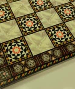 Este listado es para un set nuevo de 32 piezas de hombres de ajedrez pintados a mano con tablero. Las piezas están fabricadas en resina sólida, pintadas a mano y tienen fondos de fieltro. El tablero cuenta con un diseño de mosaico artificial sobre un núcleo de madera mdf sólida. Rey: 3 1/4 pulgadas – Reina: 3 1/8 pulgadas – Alfil: 3 pulgadas – Caballo: 2 7/8 pulgadas – Torre: 2 3/4 pulgadas – Peón: 2 5/8 pulgadas – Diámetro de la base: 1 pulgada – Peso total de las piezas: 1.75 libras – Las piezas vienen en una caja de almacenamiento de espuma reusable.